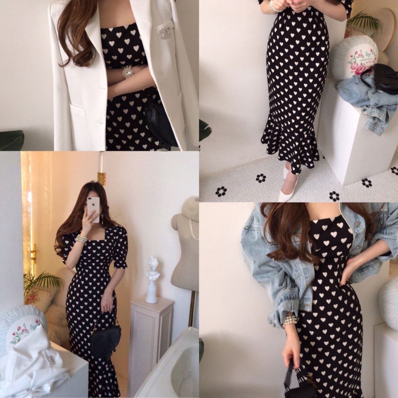 ワンピース レディース ハート柄 ラブリー スクエアネック フィッシュテール 大人可愛い お呼ばれ デート お出かけ MH2780