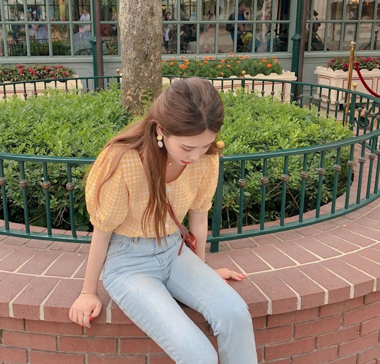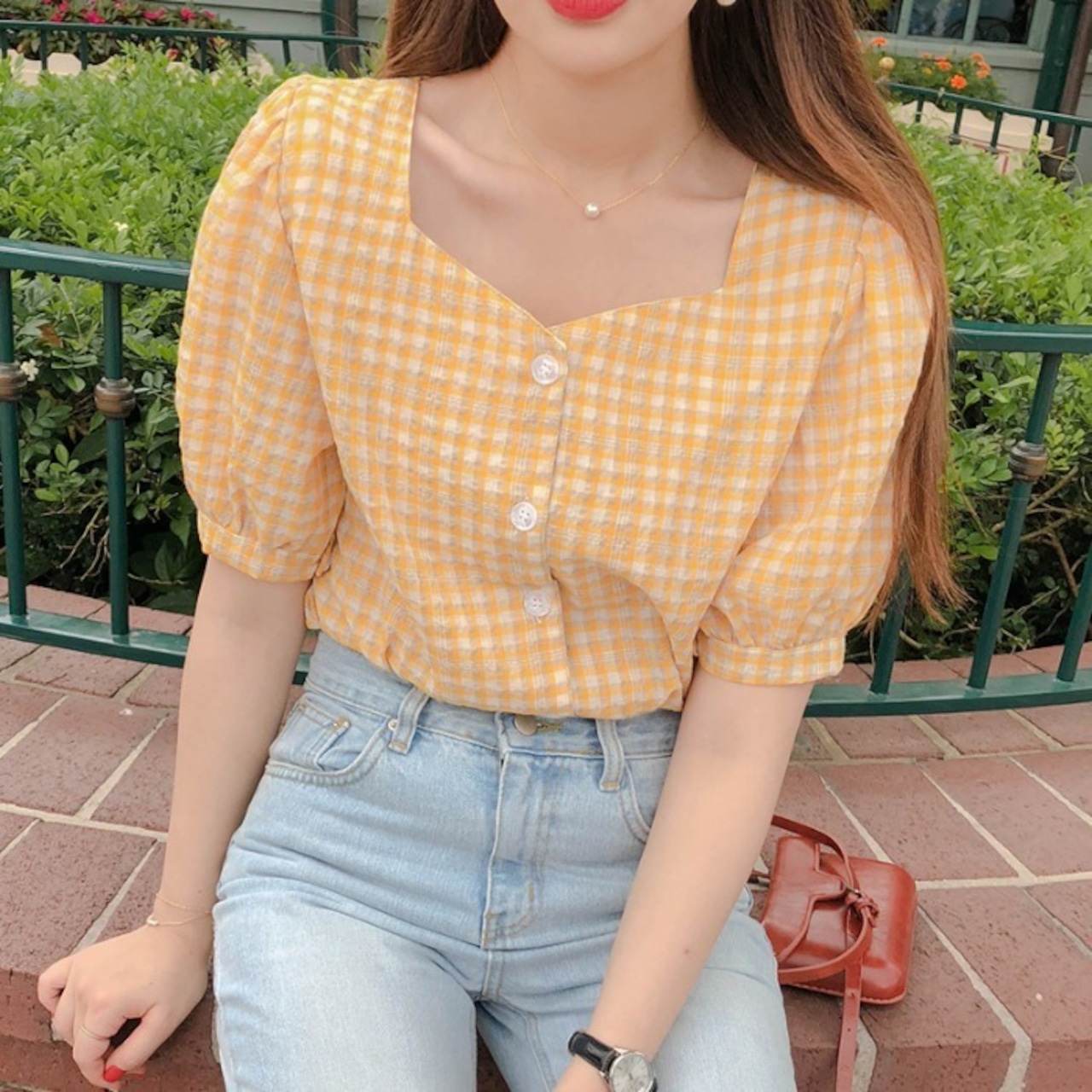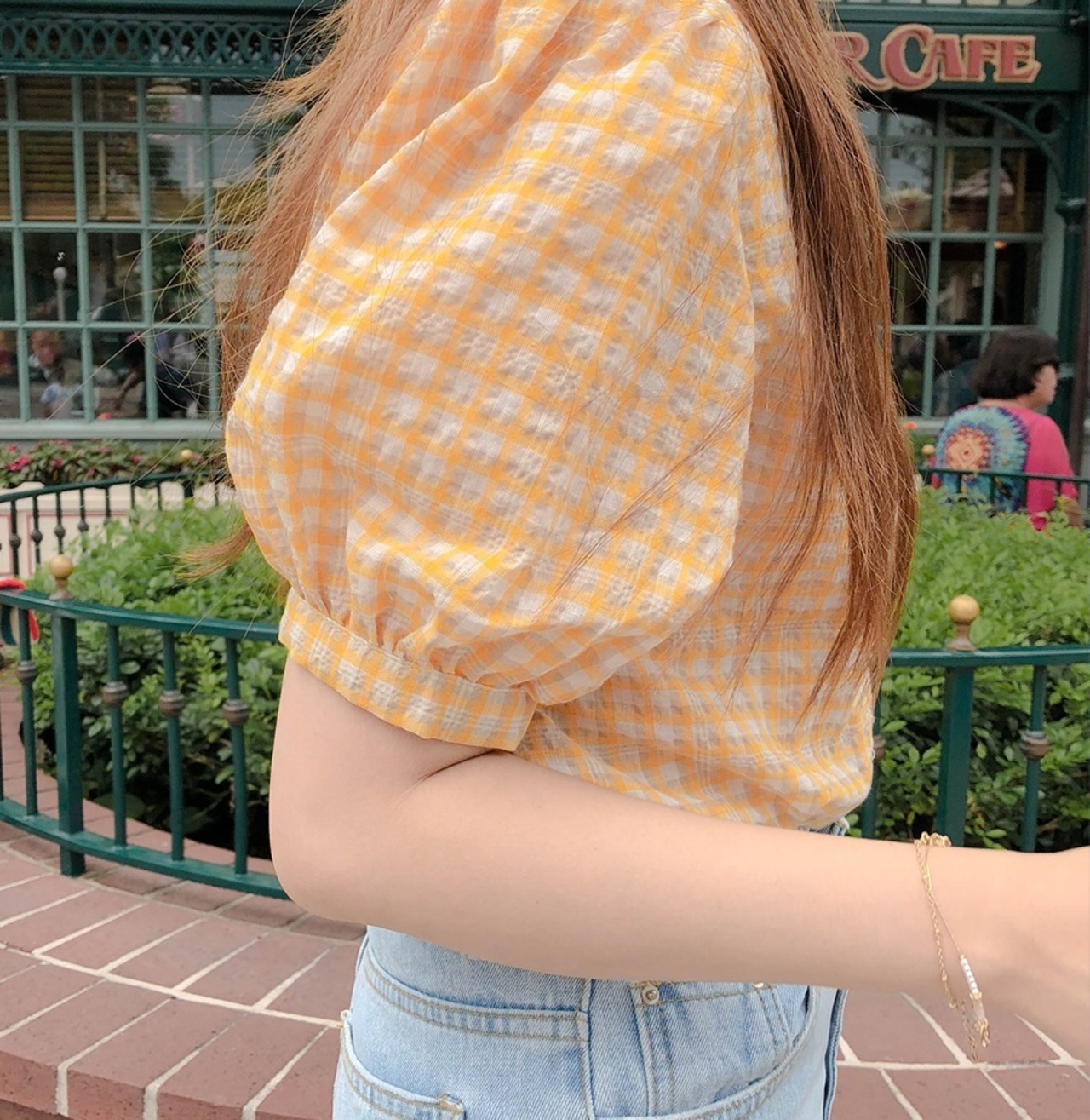 シャツ ブラウス トップス レディース チェック柄 パフスリーブ ガーリー 夏 通勤 ママコーデ デート お出かけ MH2784