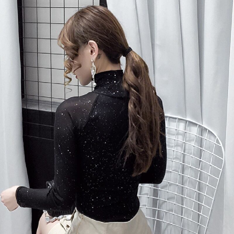ブラウス トップス レディース ハイネック シースルー キラキラ 透け感 シック セクシー ママコーデ デート お出かけ MH2787