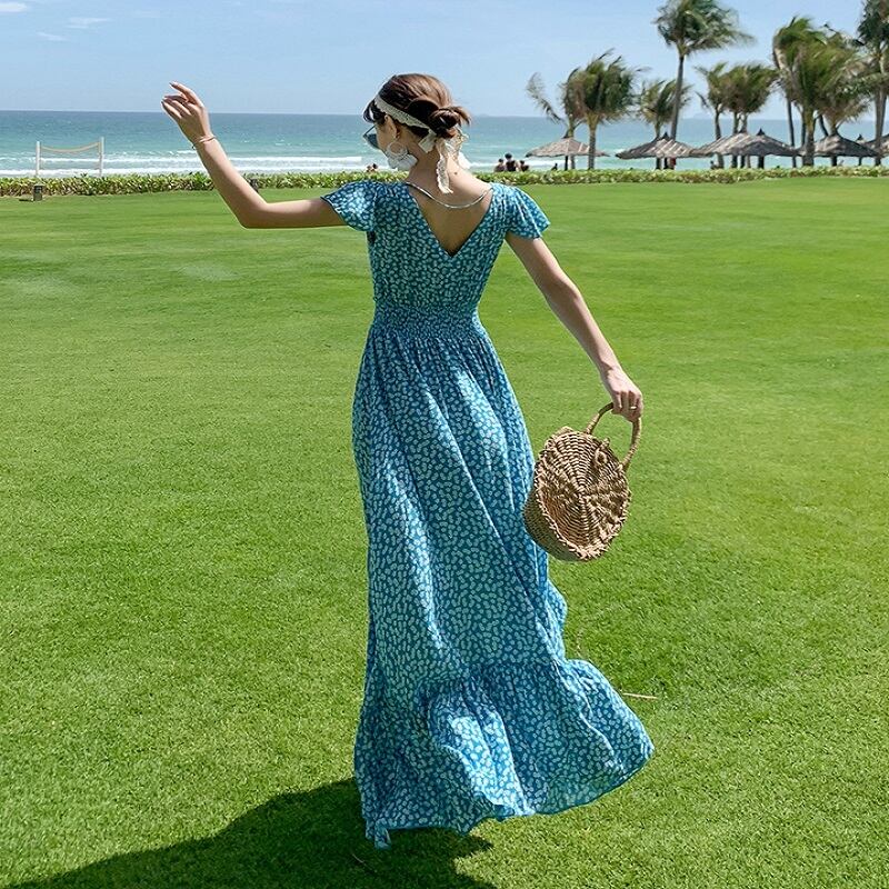 ワンピース マキシ 花柄 バックV Vネック 夏 セクシー リゾート デート お出かけ MH2792