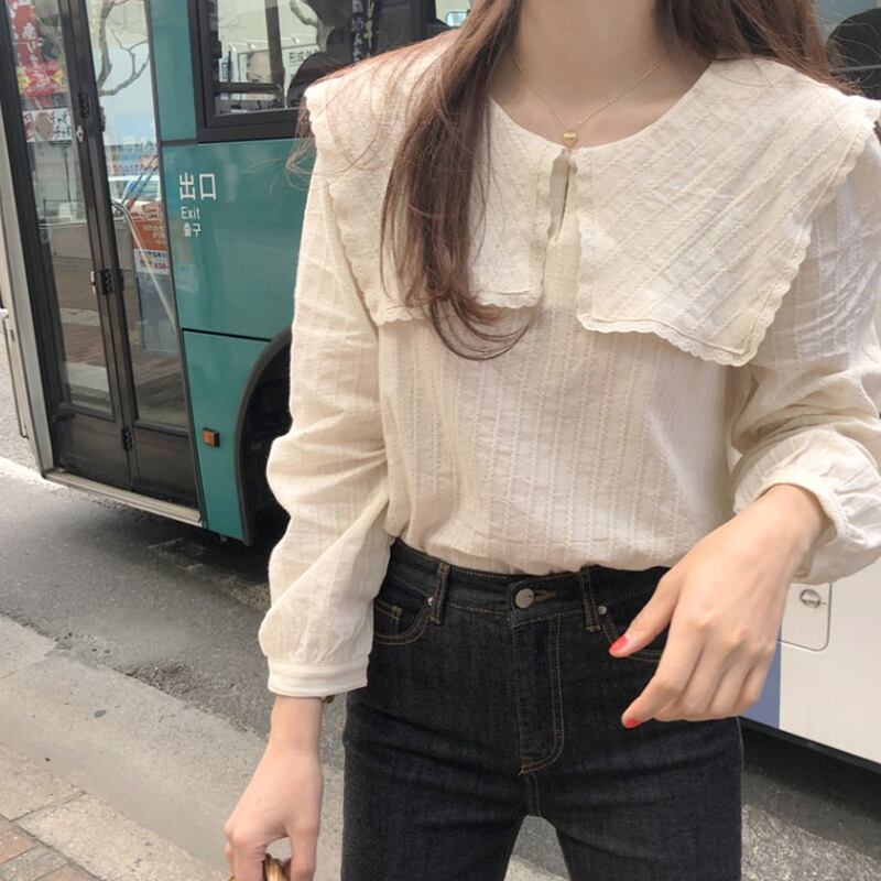 ブラウス シャツ トップス レディース 長袖 ビッグカラー レトロ ドーリー フェミニン ママコーデ デート お出かけ MH2796