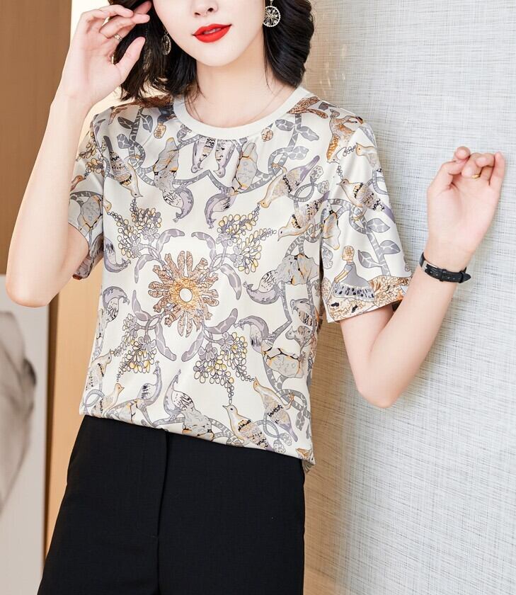 Tシャツ トップス レディース 春夏 半袖 プルオーバー アニマル 鳥類 鳥 バード 花柄 ラウンドネック プチプラ ab1955