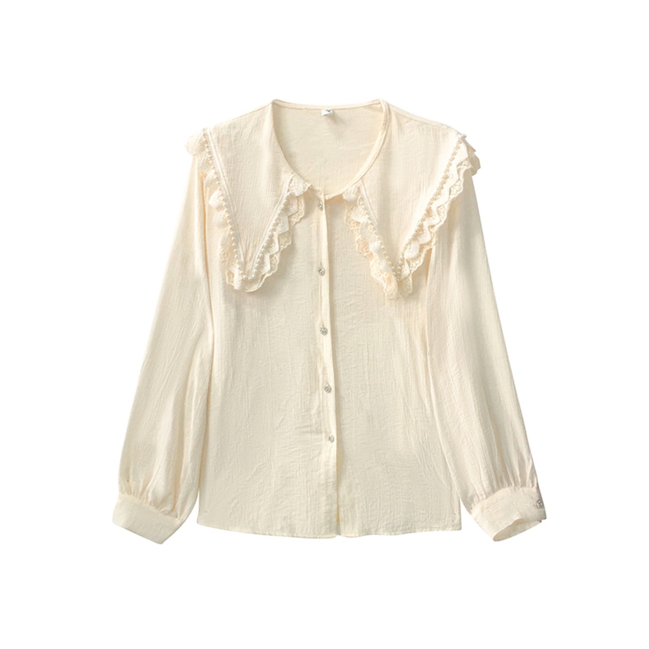 ブラウス トップス レディース 長袖 レース襟 パールボタン レトロ ガーリー ママコーデ デート お出かけ MH2819