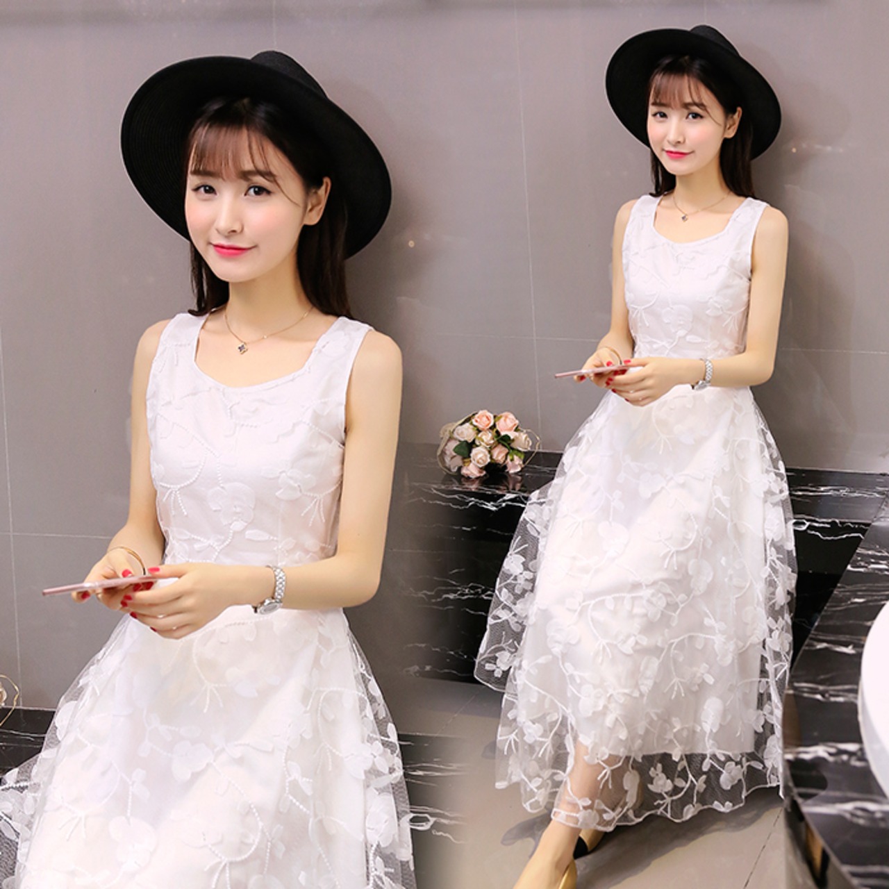 ドレスのようなエレガントさと清楚さを兼ね備えた1着。