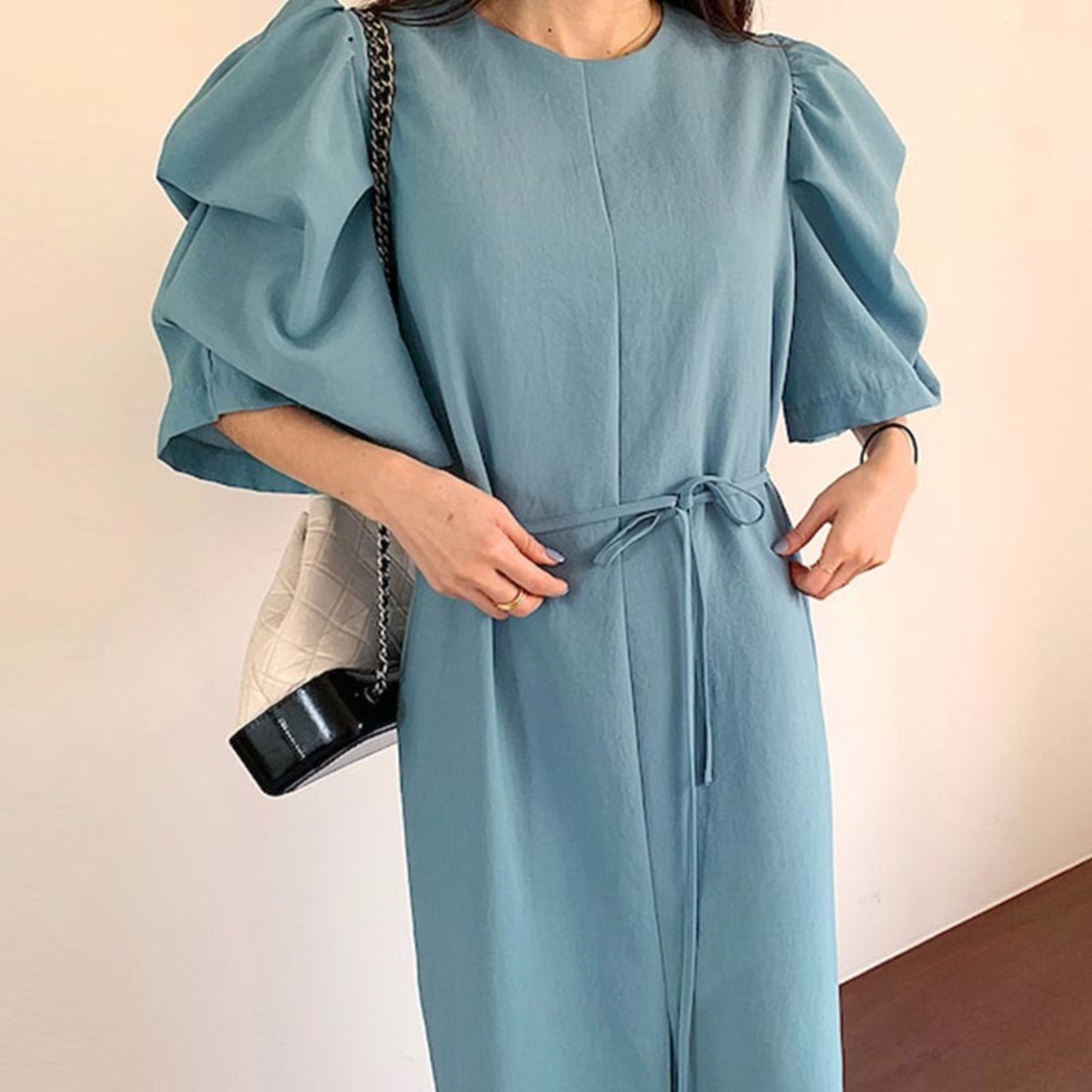 ワンピース ロング丈 レディース パフスリーブ エレガント シック ウエストマーク ママコーデ デート お出かけ MH2842