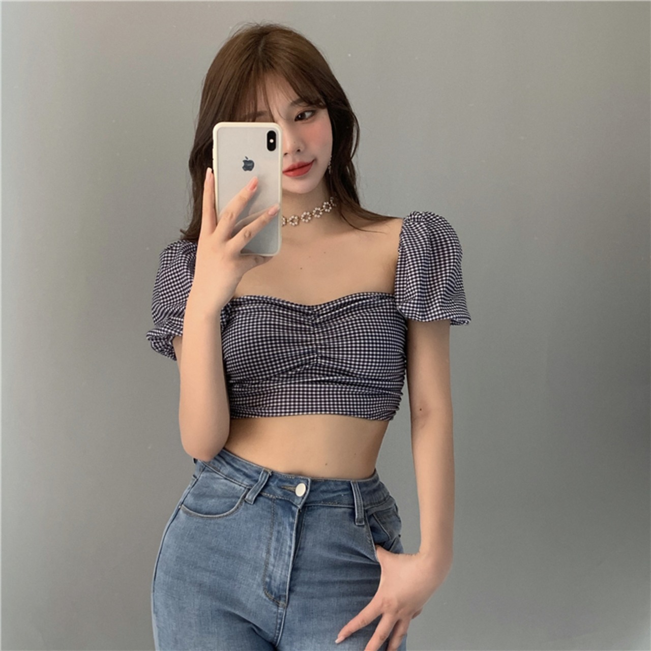 パフスリーブ トップス レディース ギンガムチェック ショート丈 チェック柄 ガーリー 夏 デート お出かけ MH2844