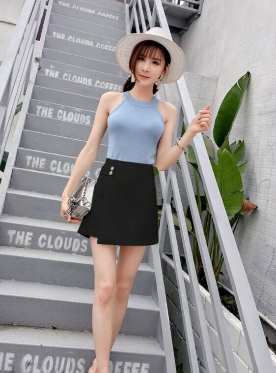 キュロット フェイクスカート パンツ レディース ズボン ショート丈 アシンメトリー ハイウエスト カジュアル ワイドレッグ 無地 ab1964