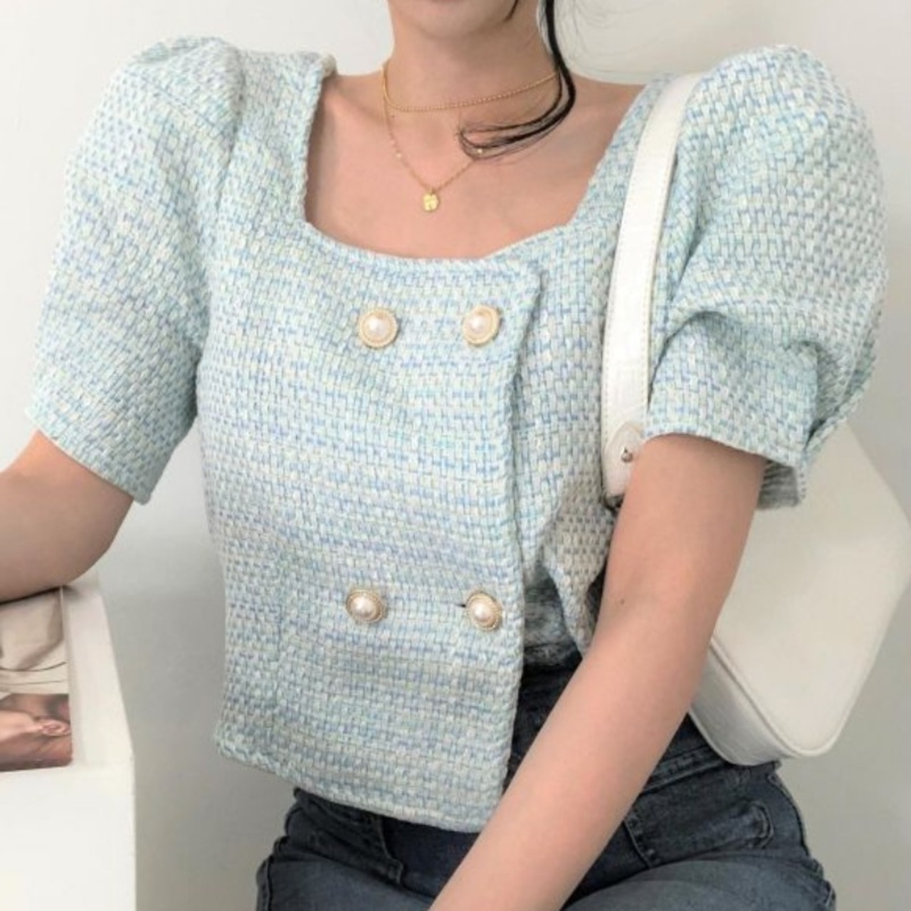 ジャケット ツイード アウター レディース ショート丈 スクエアカラー ダブルボタン 通勤 OL きれいめ ママコーデ デート お出かけ MH2867