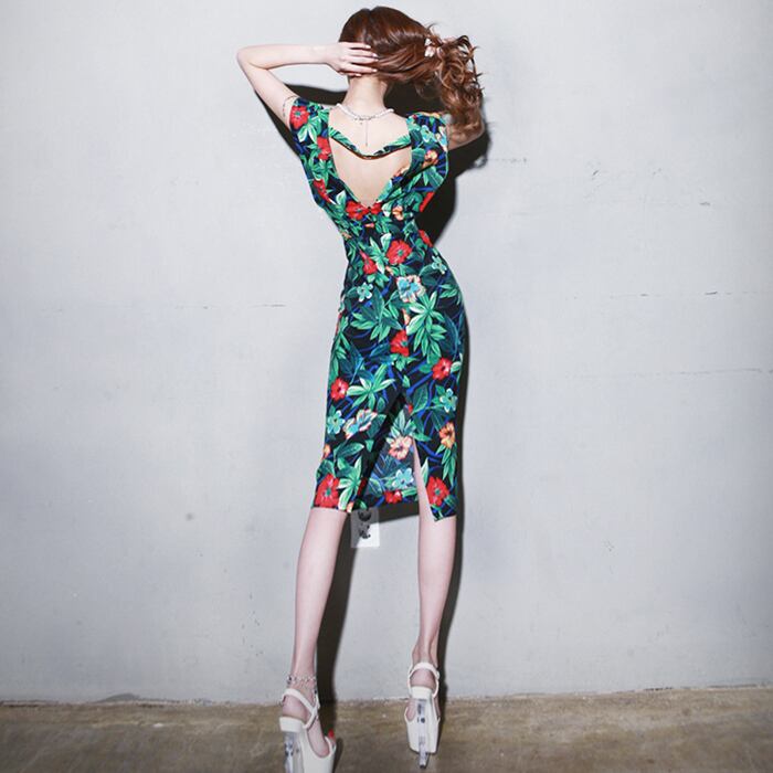 ワンピース レディース タイト 花柄 膝丈 ボタニカル エレガント スリムフィット OL パーティー お呼ばれ 記念日デート MH2895