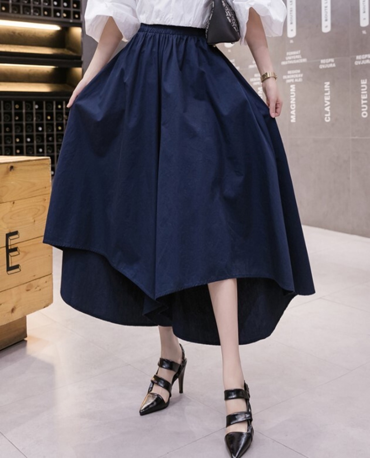 ワイドパンツ ワイドレッグ レディース ズボン 春夏 ロング丈 アシンメトリー 無地 ハイウエスト ふんわり ママコーデ ab1974