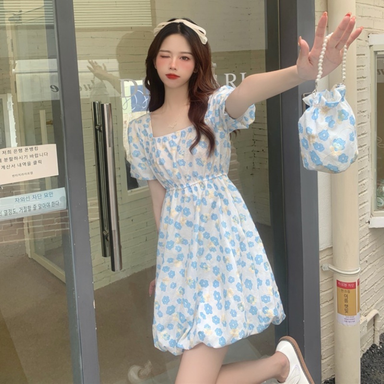 ワンピース レディース ミニ丈 バルーン 半袖 花柄 大人可愛い フェミニン ガーリー デート お出かけ MH2933