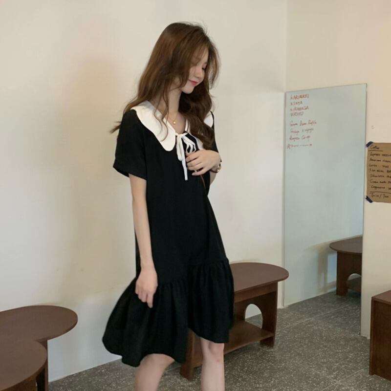 ワンピース レディース 膝丈 襟付き ドールカラー リボンタイ 大人可愛い ママコーデ デート 夏 お出かけ MH2936