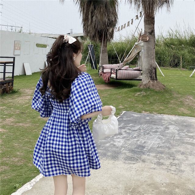 ワンピース ミニ丈 レディース ギンガムチェック ボリューム袖 チェック柄 ガーリー 夏 ママコーデ デート お出かけ MH2939