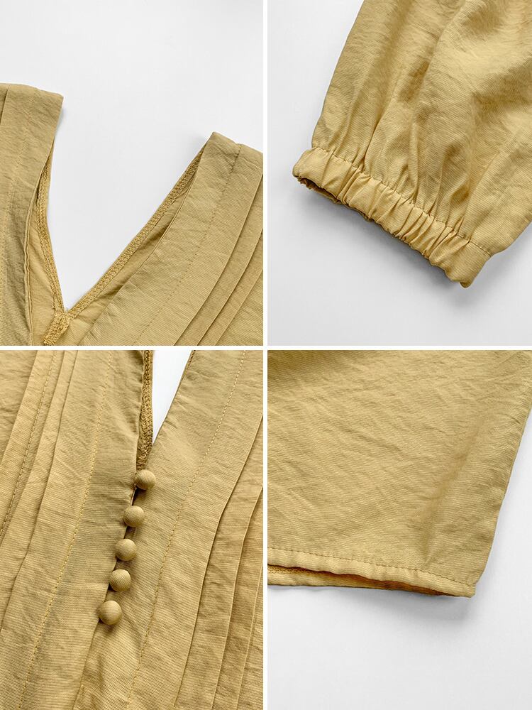 シャツ ブラウス トップス レディース Vネック 長袖 くるみボタン ゆったり こなれ感 通勤 オフィス ママコーデ デート お出かけ MH2947