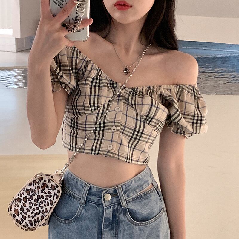 ショートトップス レディース 半袖 ショート丈 チェック柄 ヘルシー ガーリー 夏 デート お出かけ MH2956