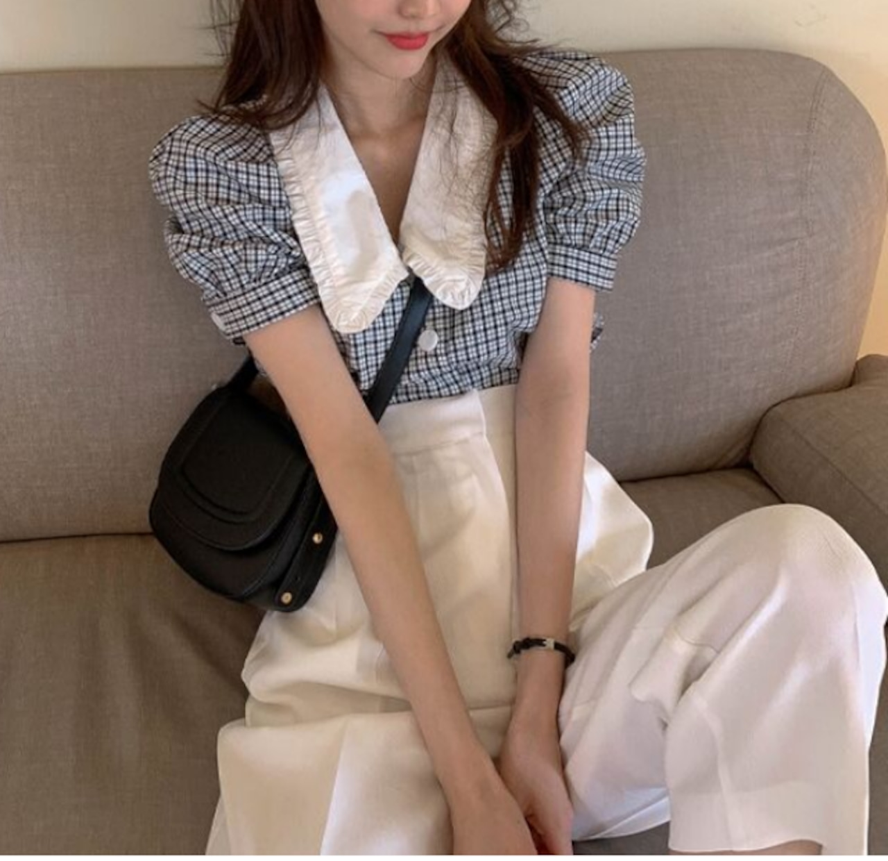 チェックが可愛いブラウス。
