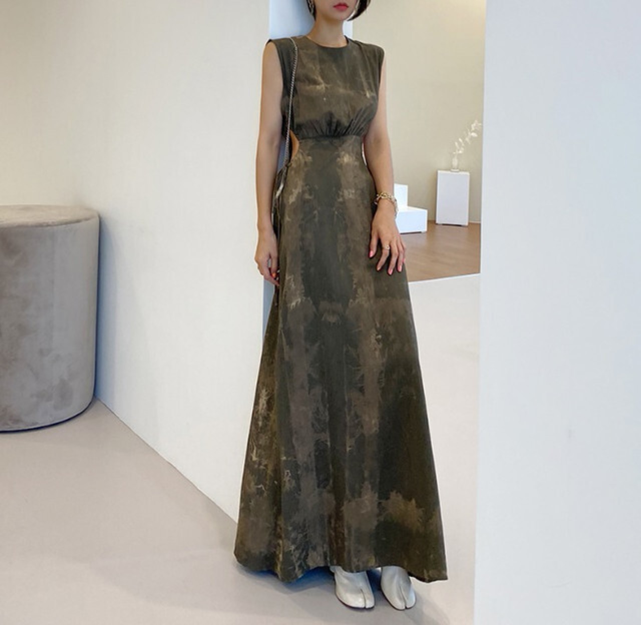 カットアウト ワンピース レディース ロング丈 ノースリーブ おしゃれ きれいめ 夏 ママコーデ デート お出かけ MH2974