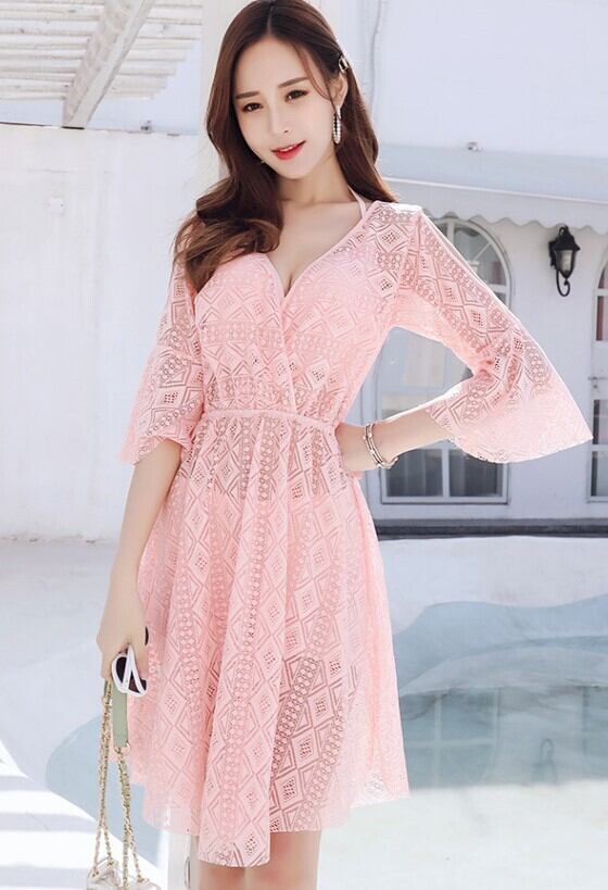 水着 スリーピース レディース ビキニ バックオープン セクシー ワンピース パンツ ホルターネック ガーリー ピンク ab1992