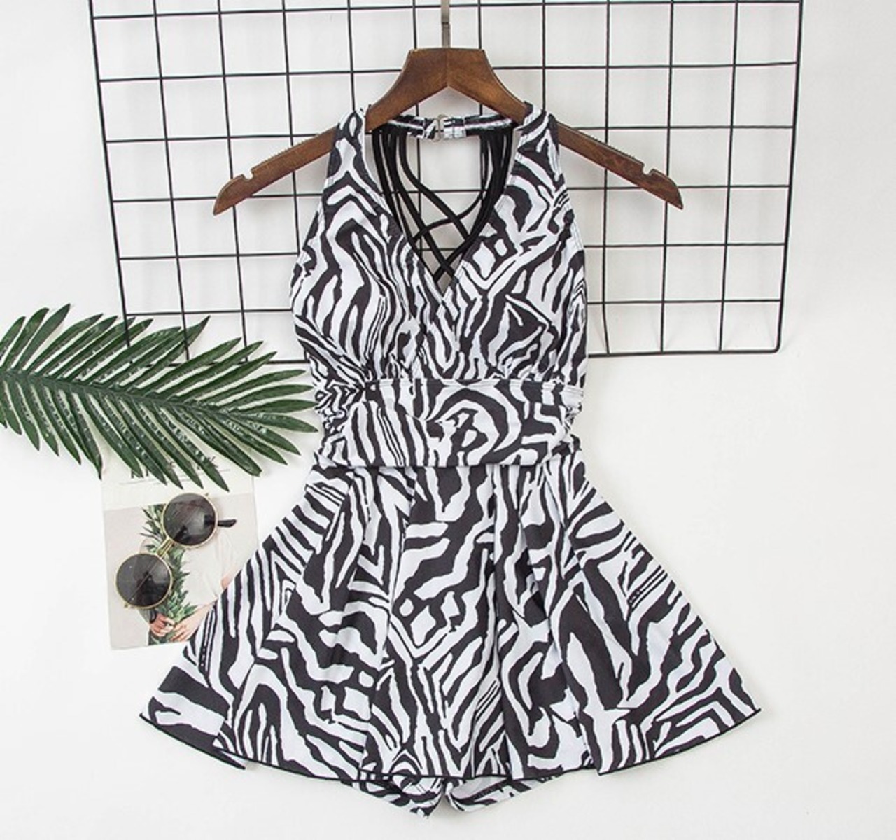 ワンピース水着 水着 レディース ワンピース ゼブラ柄 シック バッククロス セクシー Vネック フレア ママ水着 ab2000