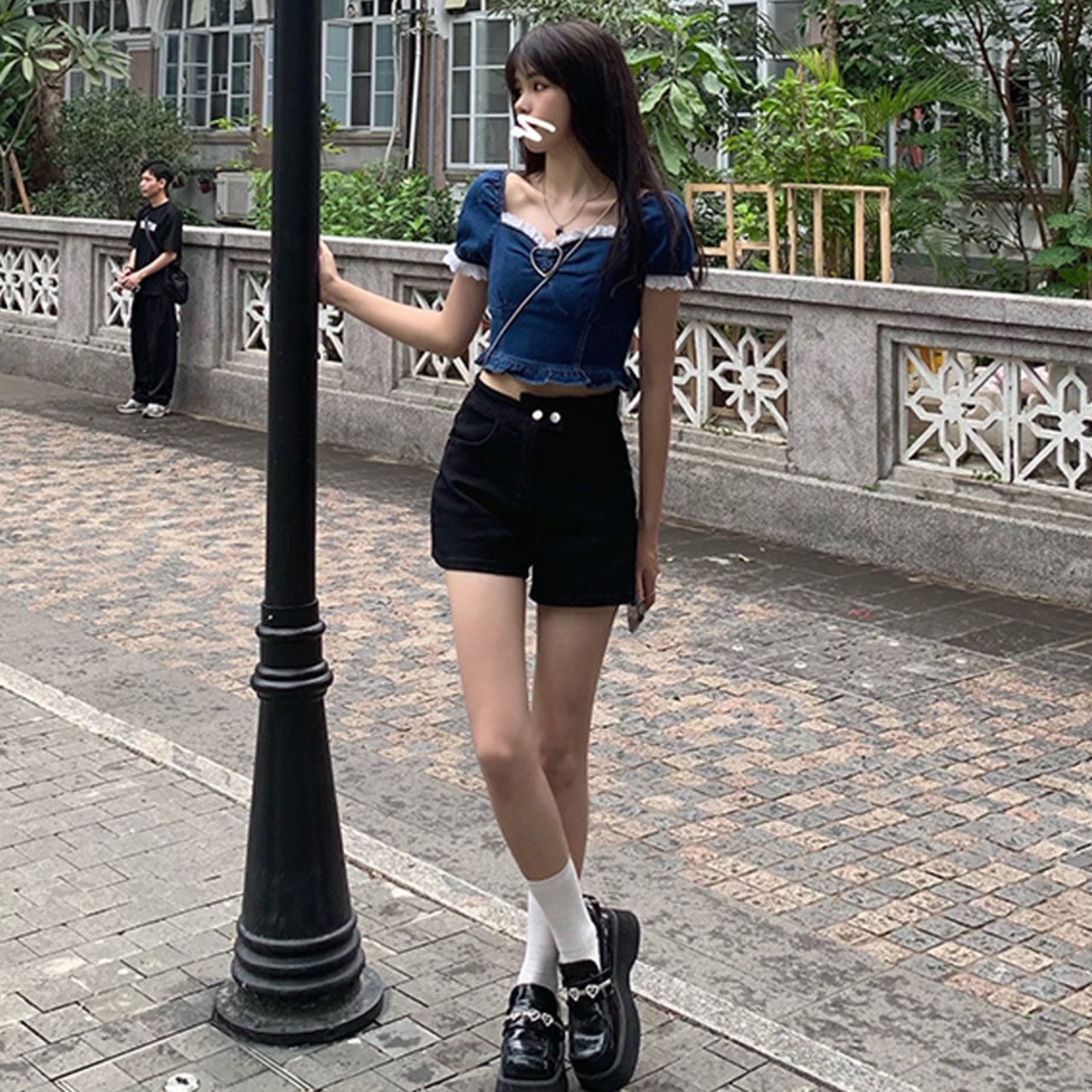 デニムがカジュアルでガーリーな装いに♪