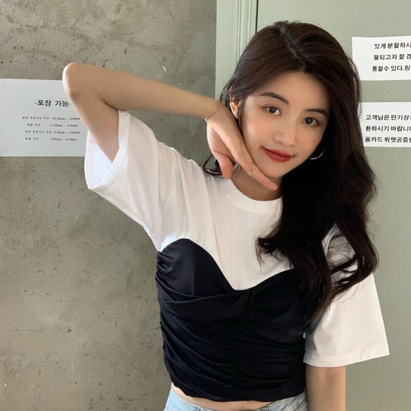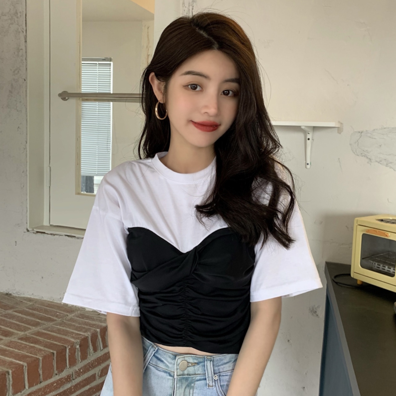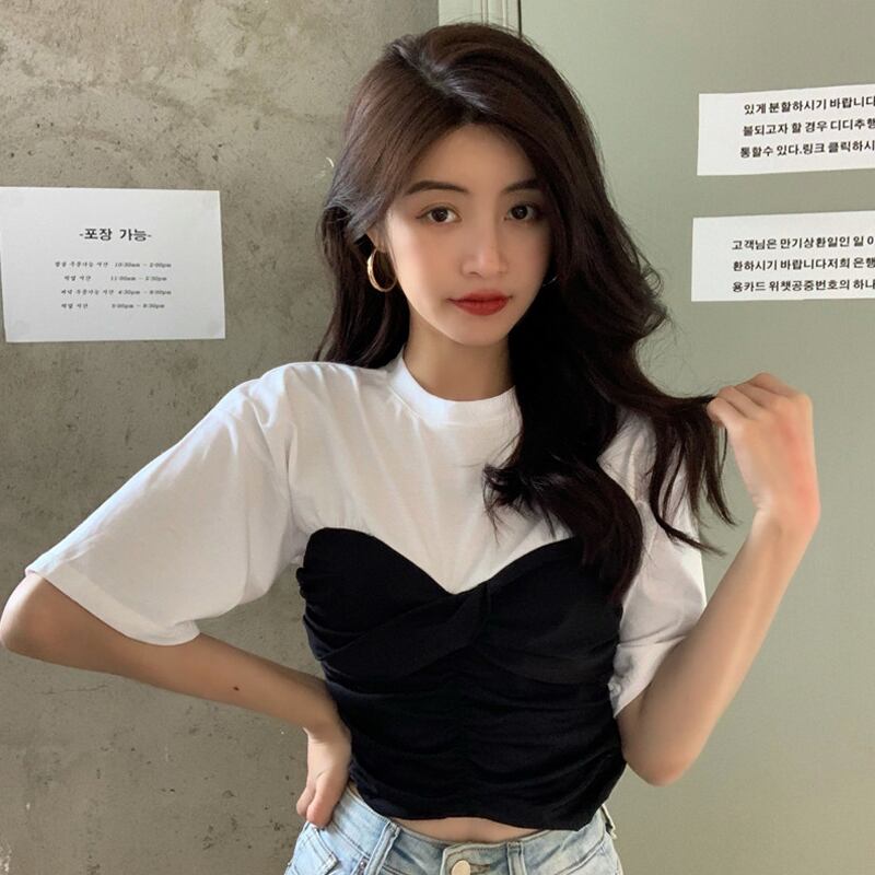 Tシャツ トップス レディース 半袖 ドッキング 重ね着風 カジュアル 夏 ガーリー おしゃれ ママコーデ デート お出かけ MH3033