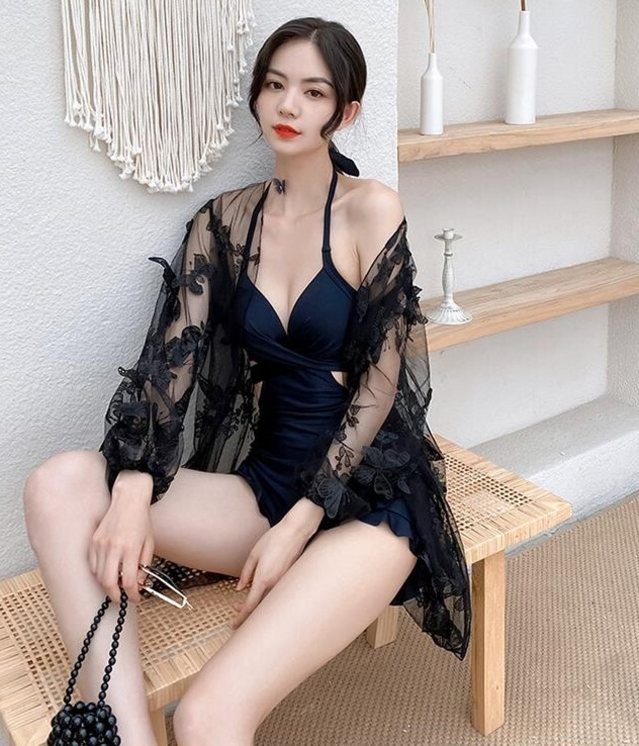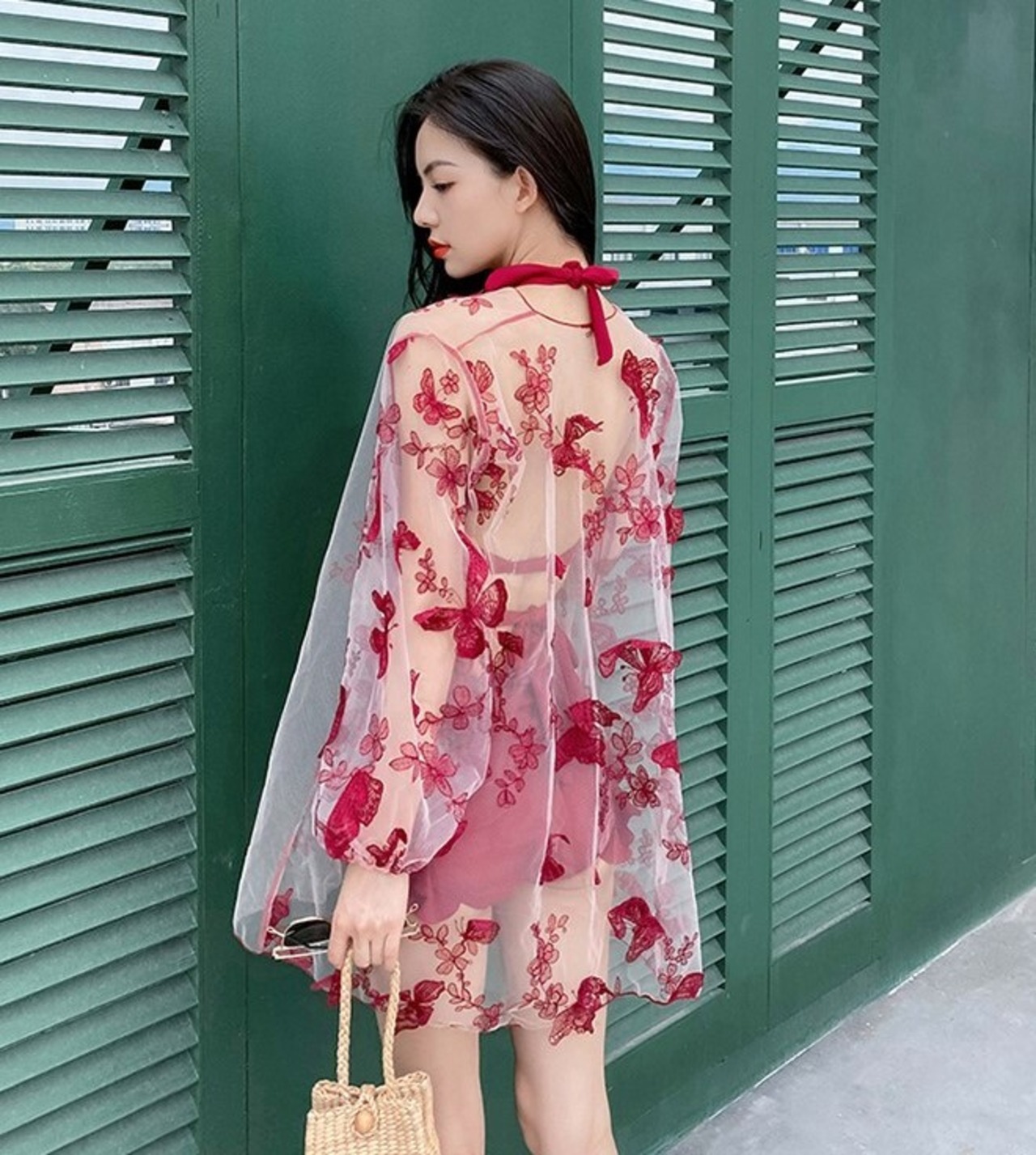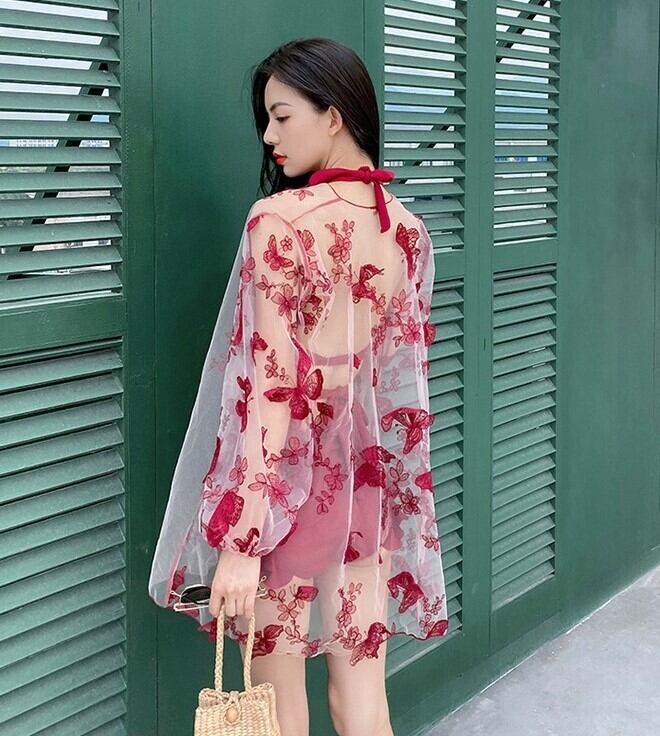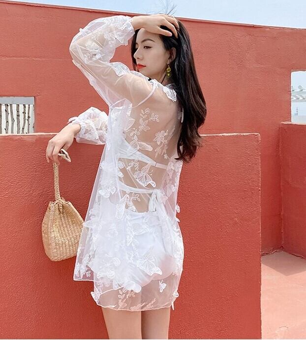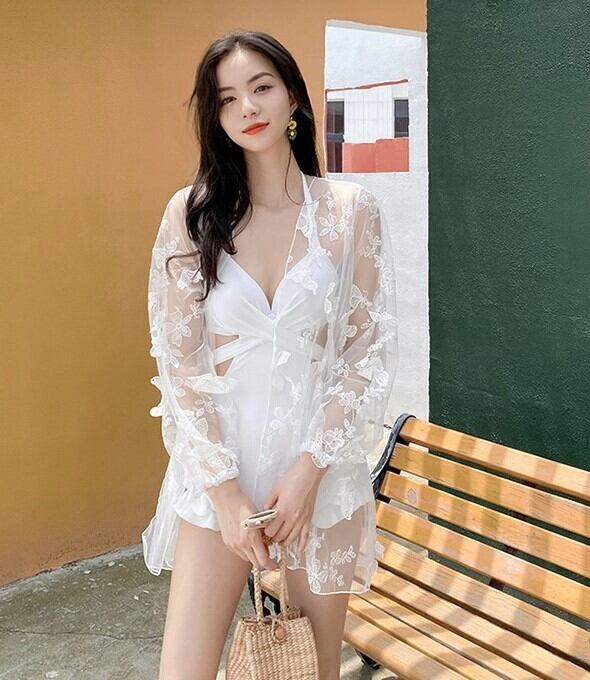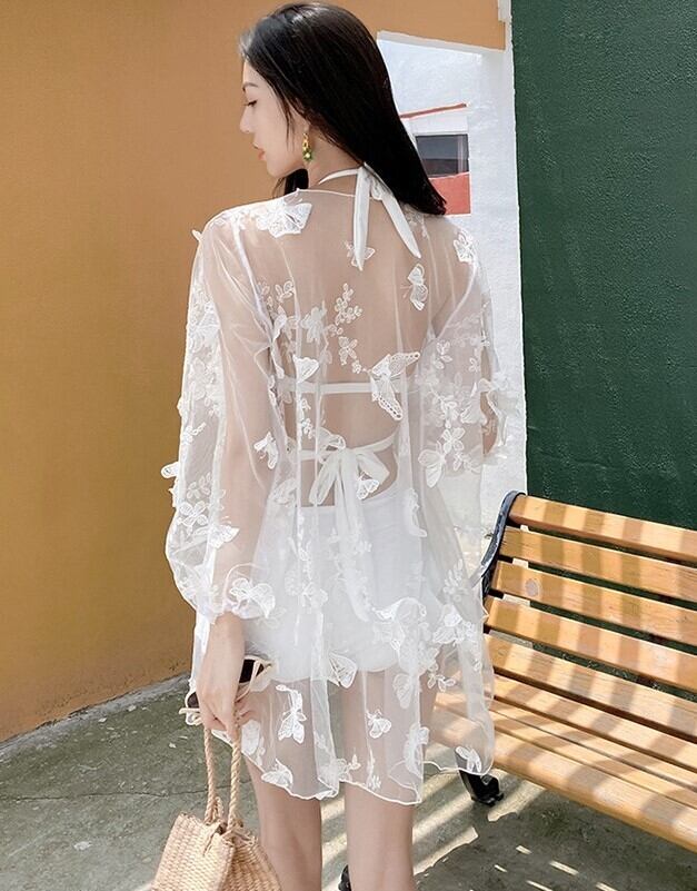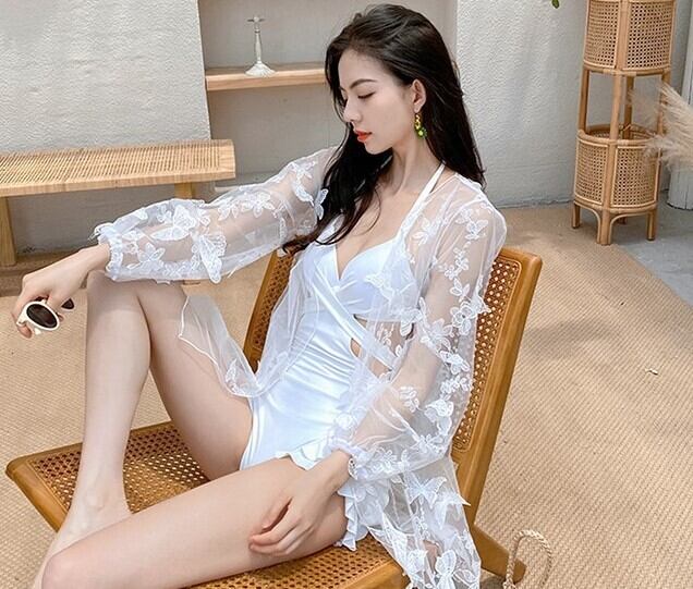 ワンピース水着 水着 レディース ツーピース バックオープン セクシー フリル カーディガン 蝶 バタフライ エレガント ab2008
