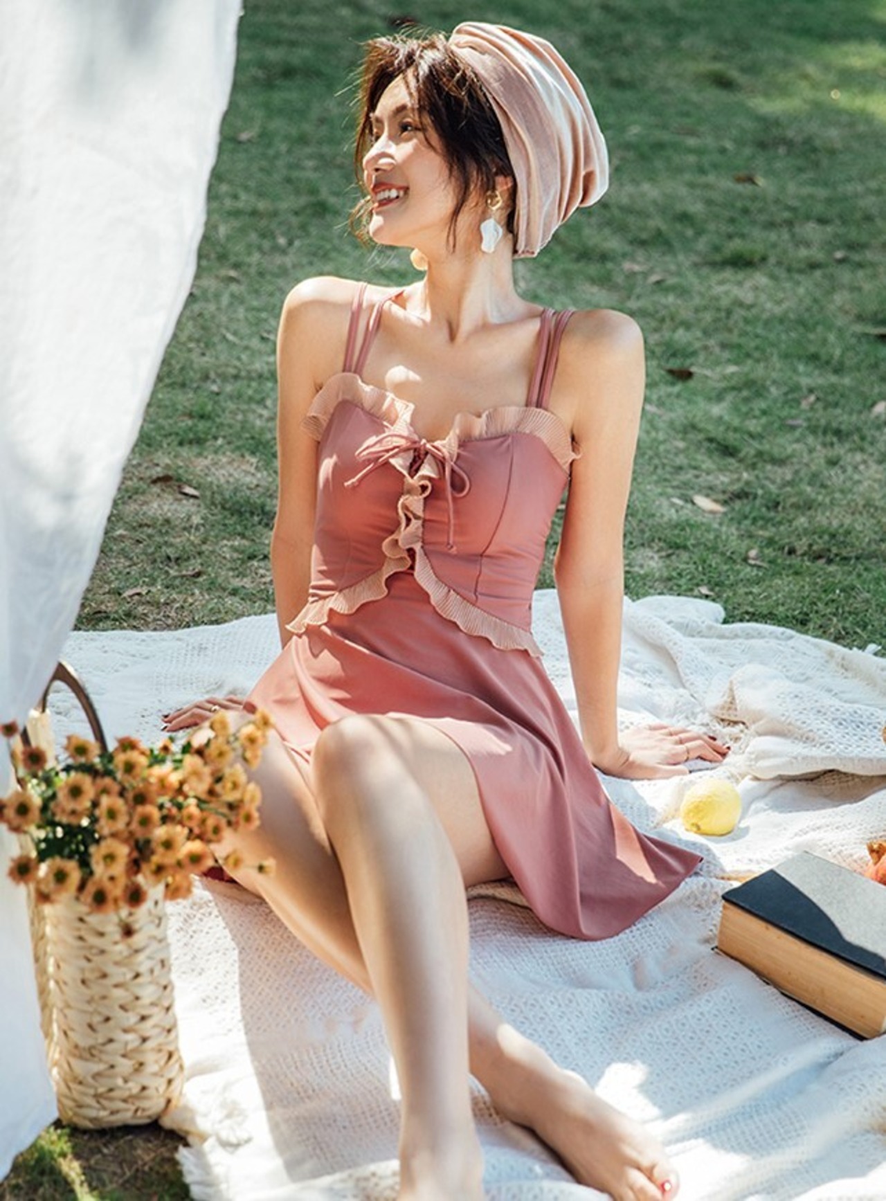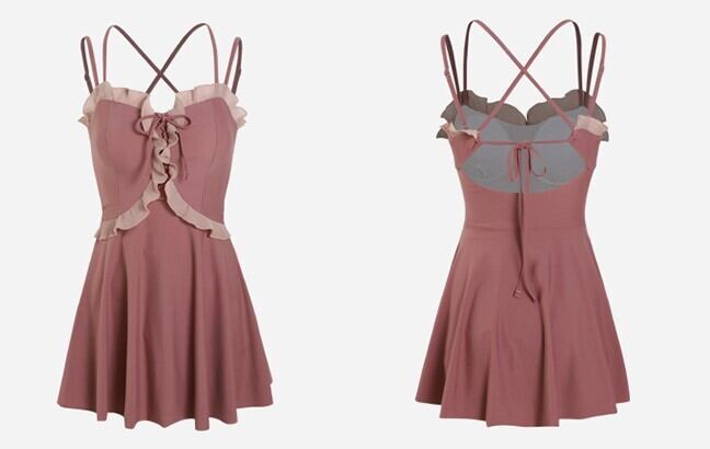 ワンピース水着 水着 レディース フリル 無地 リボン フェミニン バッククロス ガーリー プチプラ 体型カバー ab2014