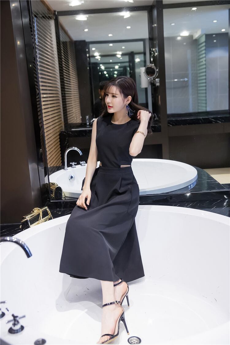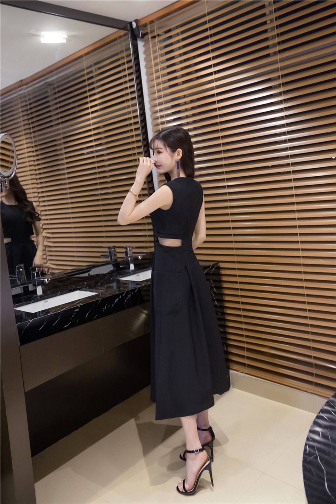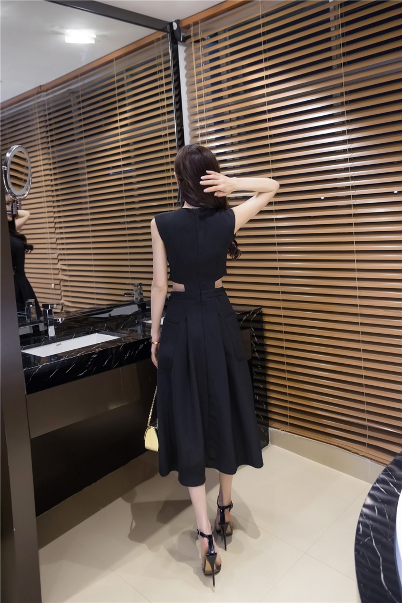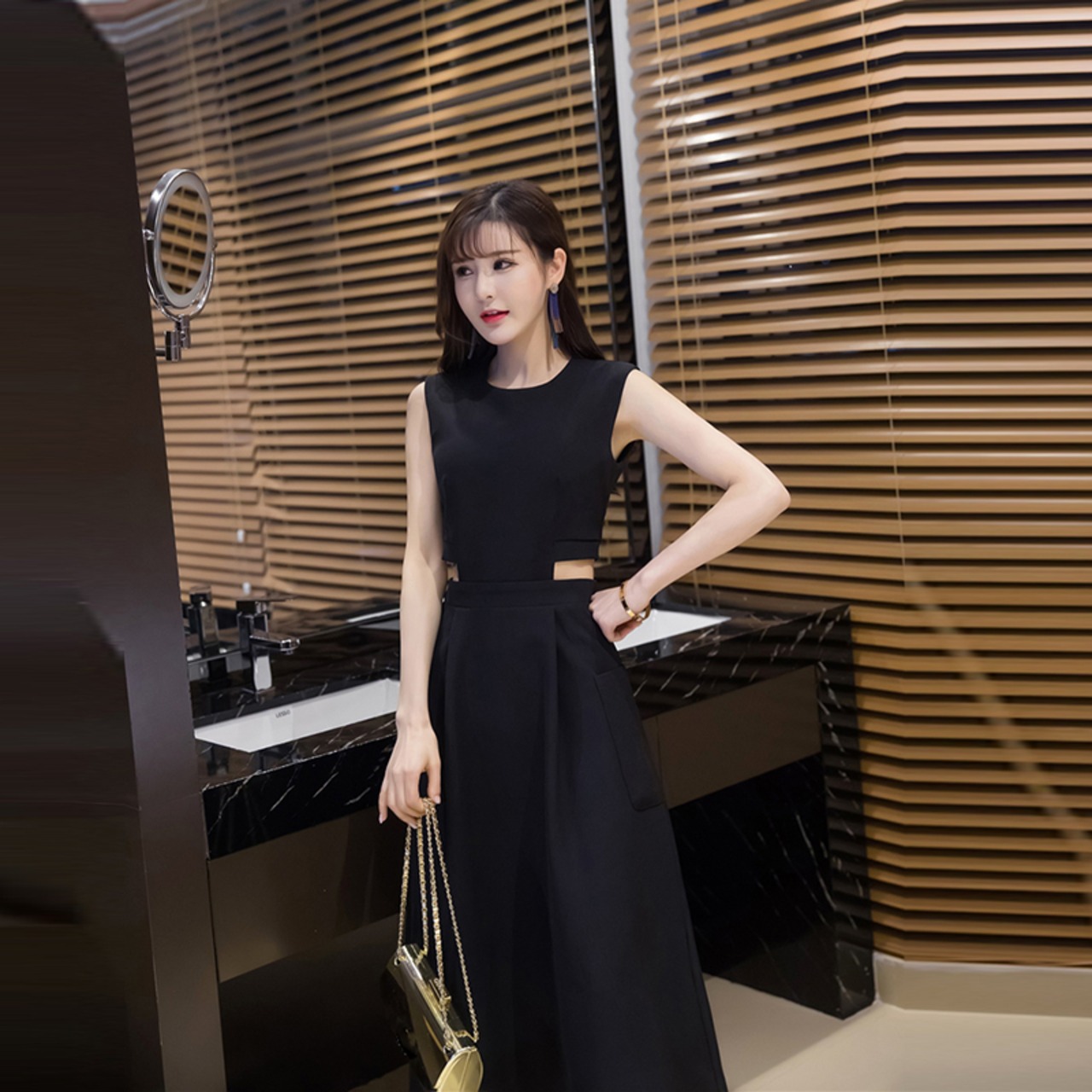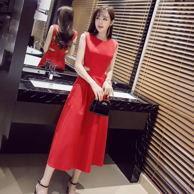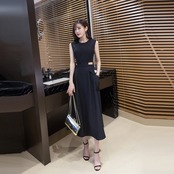 ワンピース レディース ロング丈 ノースリーブ ラウンドネック サイドオープン ヘルシー 肌見せ 夏 デート お出かけ MH3093