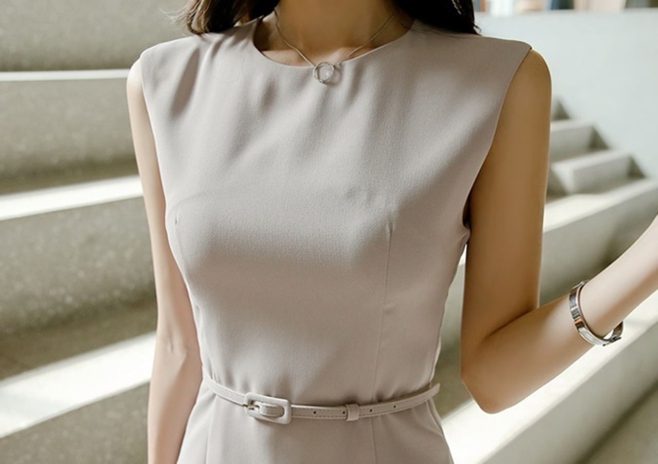 ワンピース レディース 膝丈 ノースリーブ ウエストベルト 夏 きれいめ 通勤 OL オフィス お出かけ MH3096