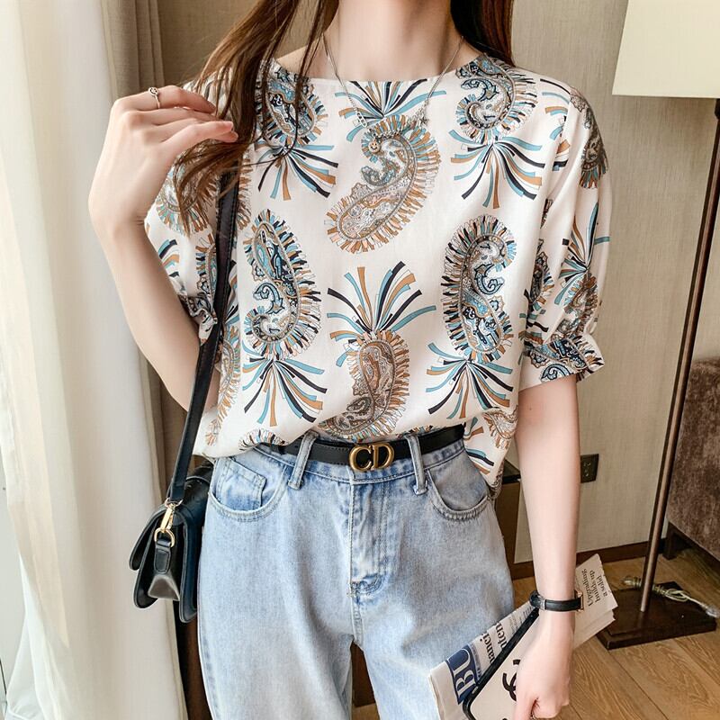 シフォンシャツ トップス レディース シフォン ペイズリー レトロ デザイン おしゃれ ママコーデ デート お出かけ MH3100