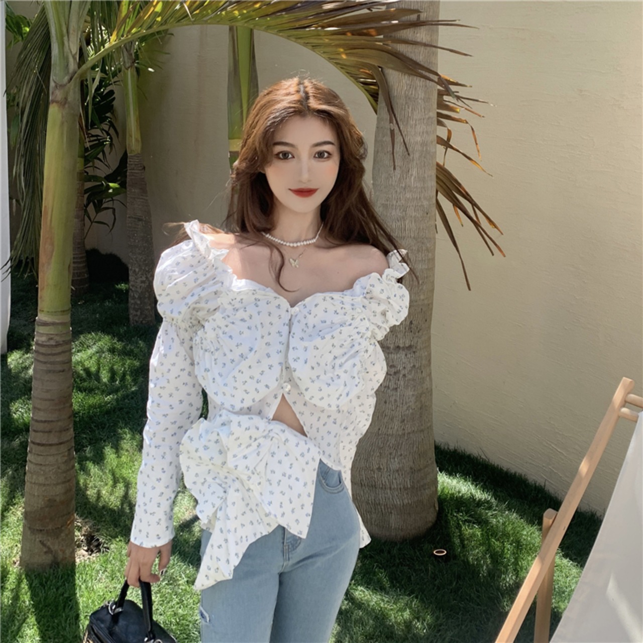 ブラウス トップス レディース 長袖 花柄 フローラル フリル スタイリッシュ おしゃれ ママコーデ デート お出かけ MH3103