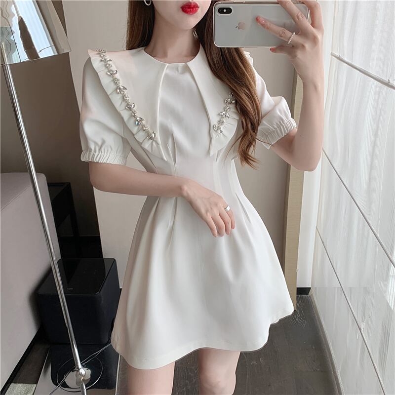 ワンピース トップス レディース ミニ丈 Aライン 襟ビジュー おしゃれ 大人可愛い ガーリー デート 記念日デート お出かけ MH3104