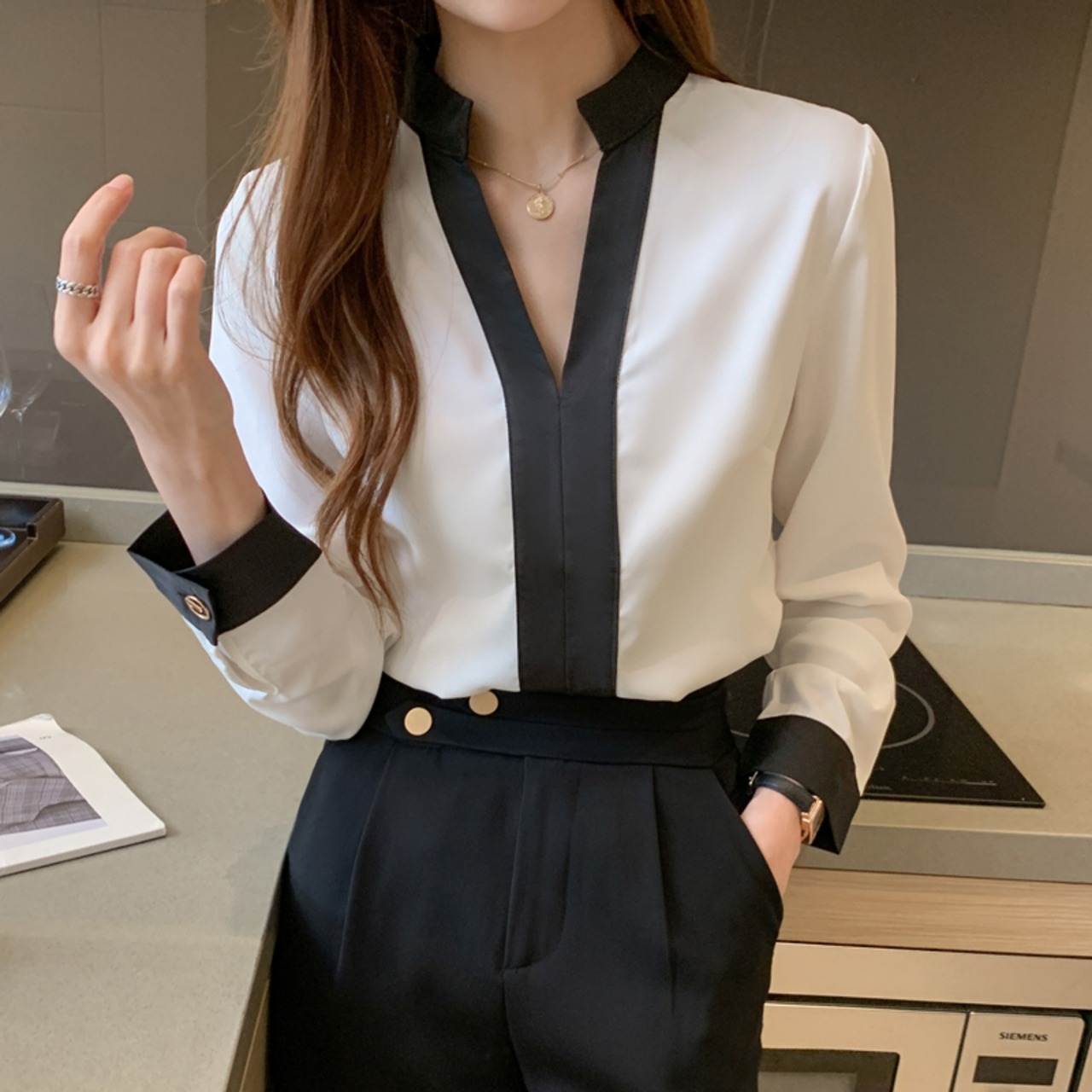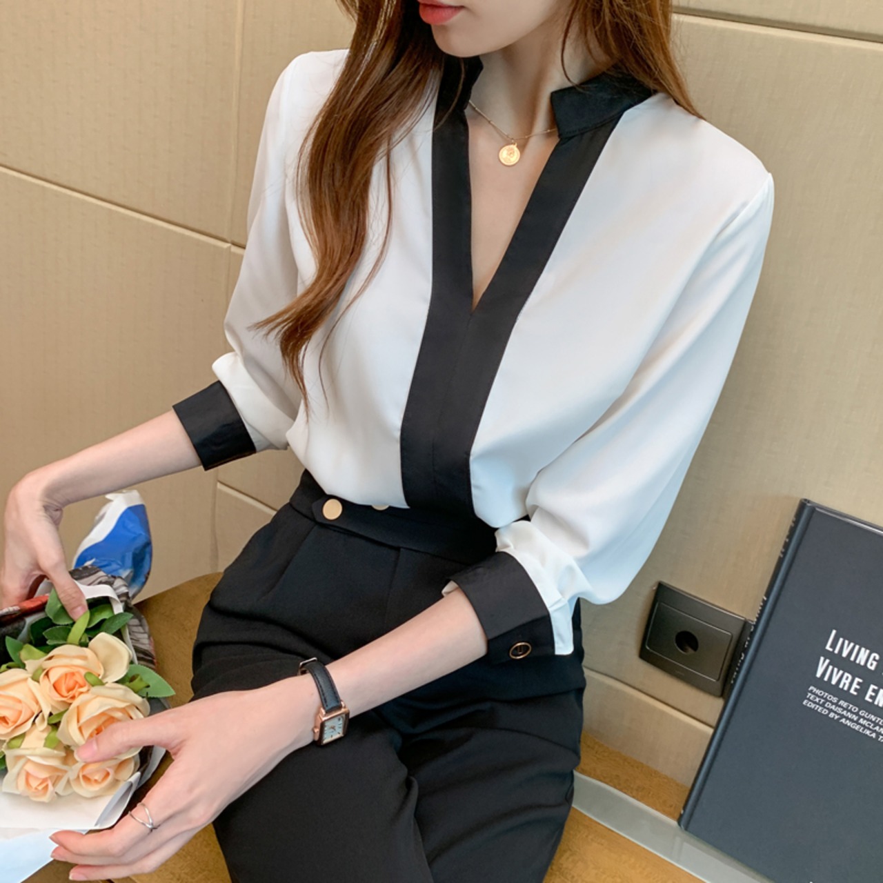 ブラウス トップス レディース 長袖 Vネック きれいめ ママコーデ 通勤 オフィス OL オフィスコーデ デート お出かけ MH3119
