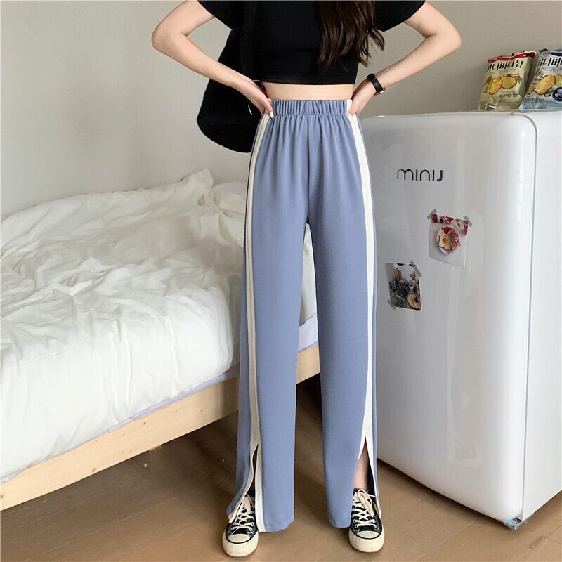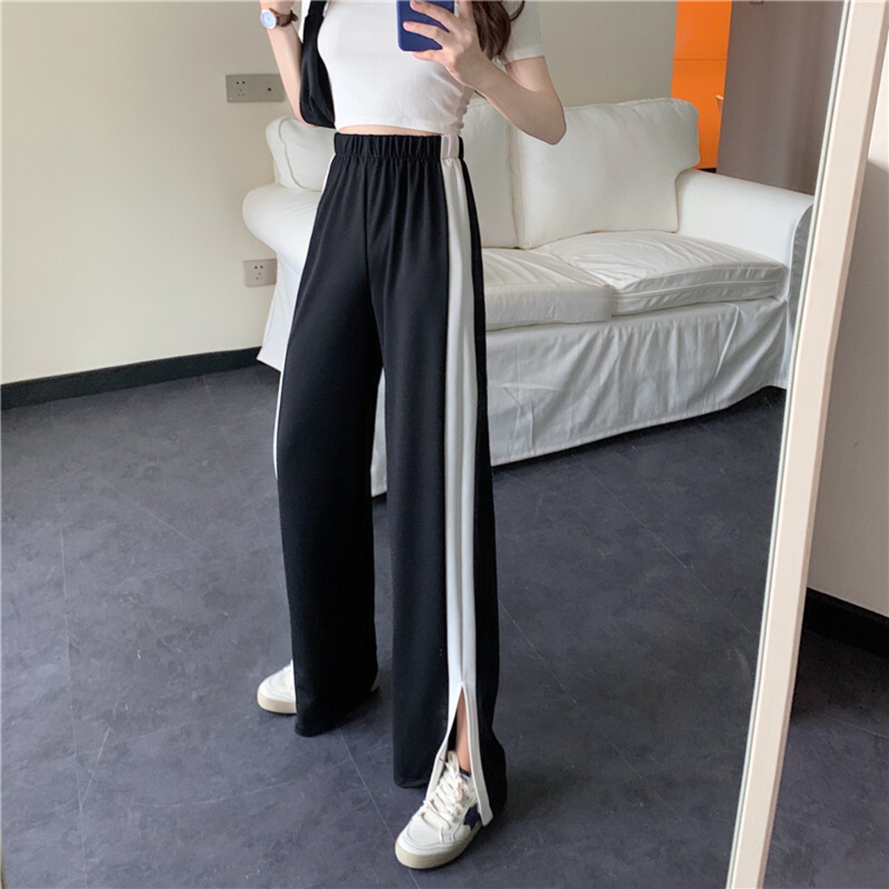 カジュアルパンツ パンツ レディース ワイドレッグ ロング丈 スポーツ カジュアル スリット 夏 ママコーデ デート お出かけ MH3123