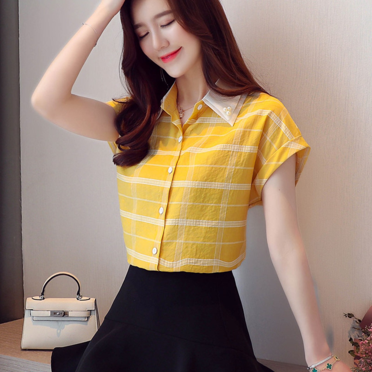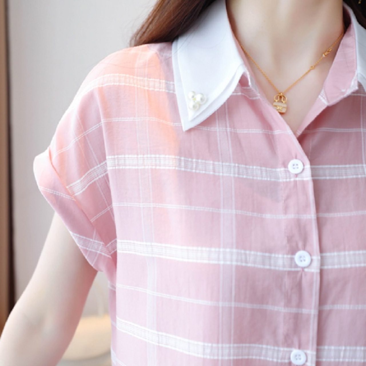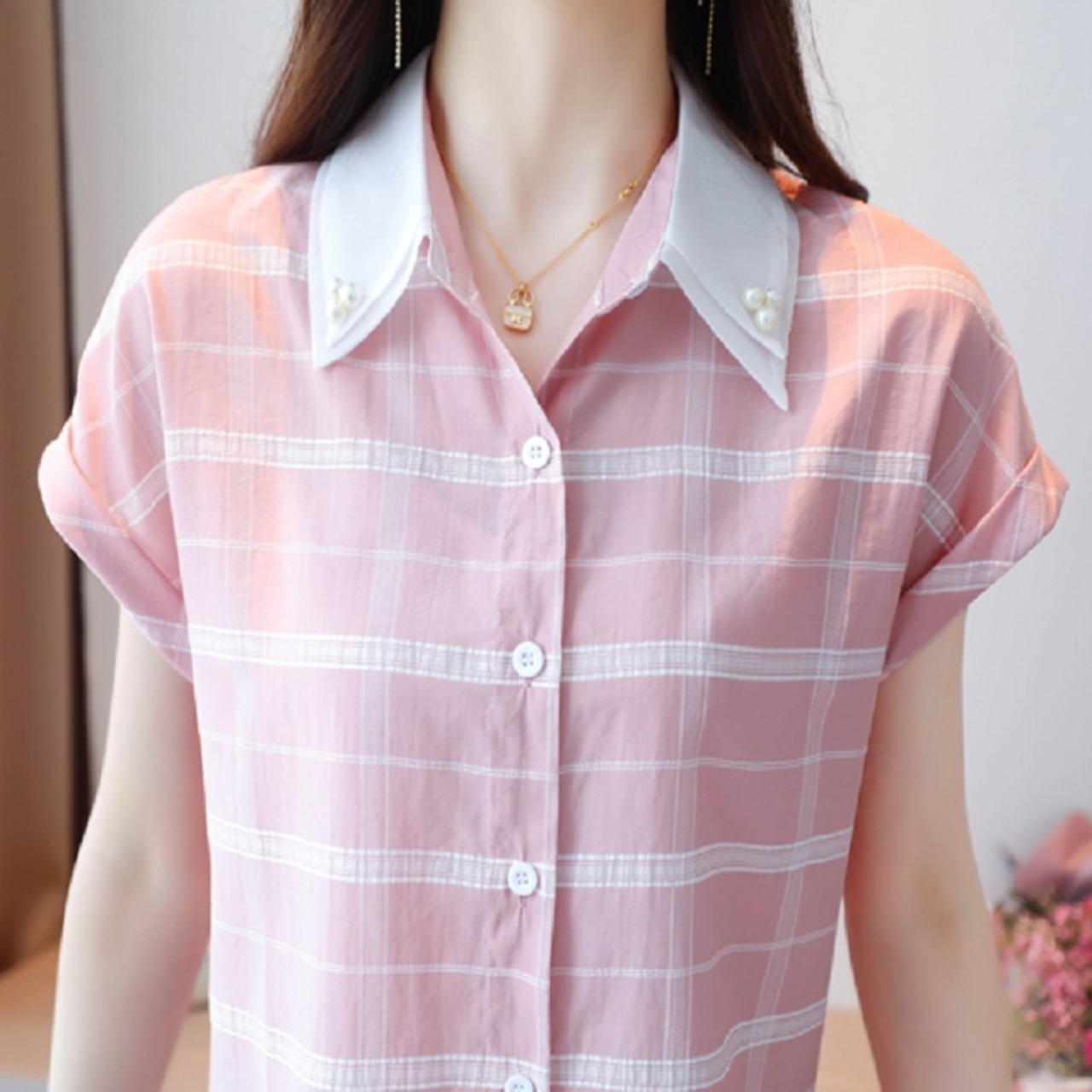 シャツ トップス レディース 半袖 チェック柄 シフォン 夏 襟ビジュー 2重襟 きれいめ ママコーデ 通勤 OL オフィス MH3131