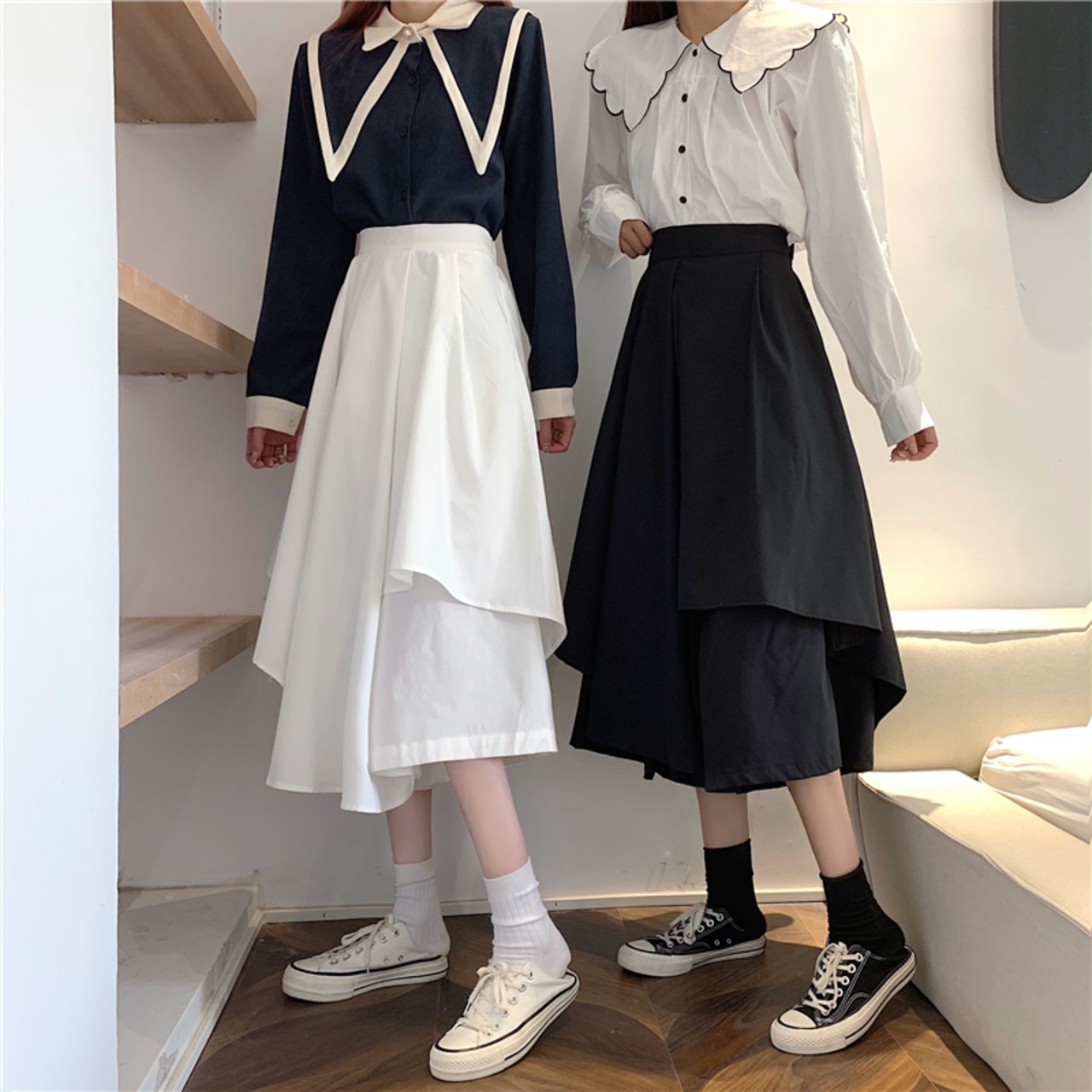 Aラインスカート スカート レディース ミモレ丈 Aライン ブラック ホワイト フレア フェミニン ガーリー ママコーデ デート お出かけ MH3160
