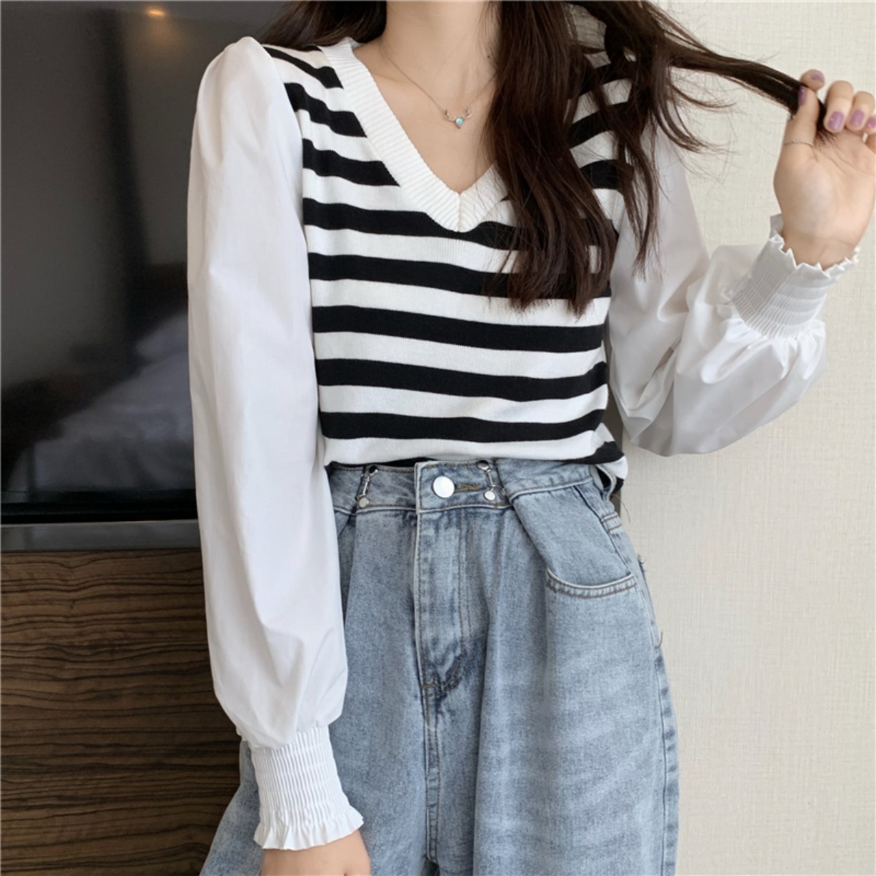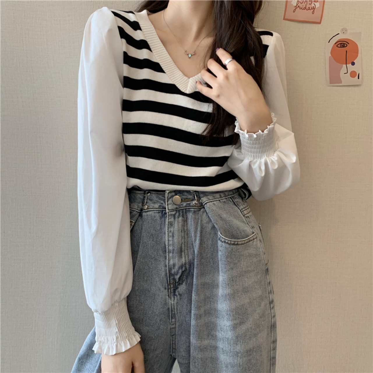 ニット トップス レディース 長袖 Vネック ボーダー カジュアル ママコーデ デート お出かけ MH3170