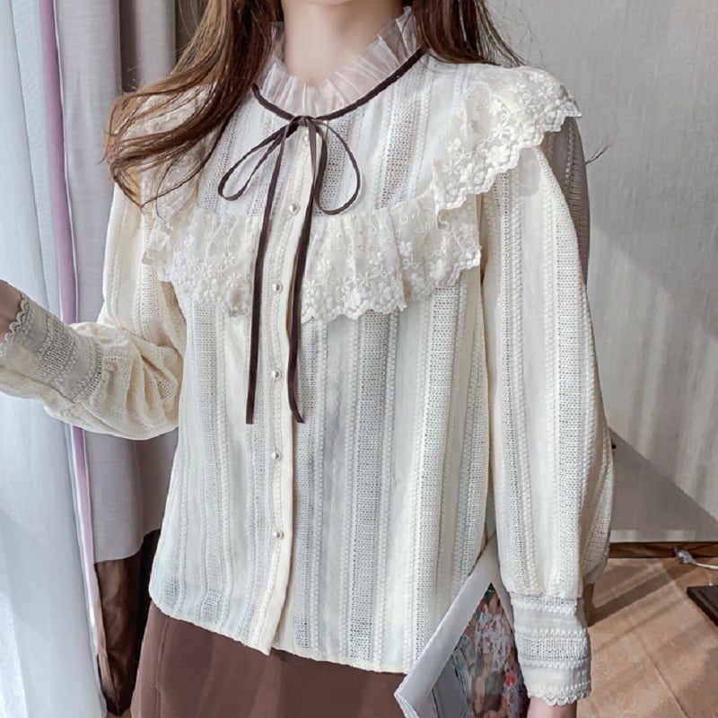 シフォンブラウス トップス レディース 長袖 リボンタイ シフォン フリル パールボタン きれいめ ママコーデ デート お出かけ MH3181