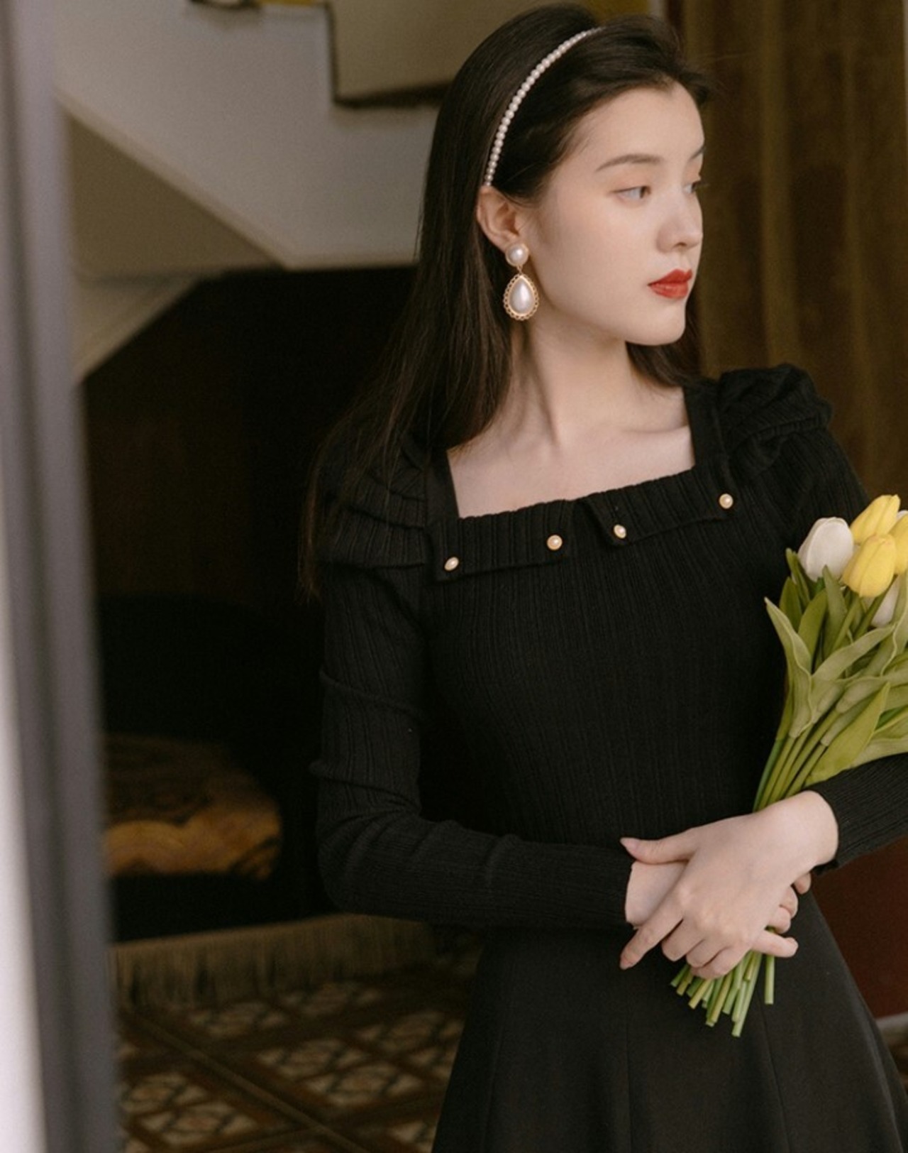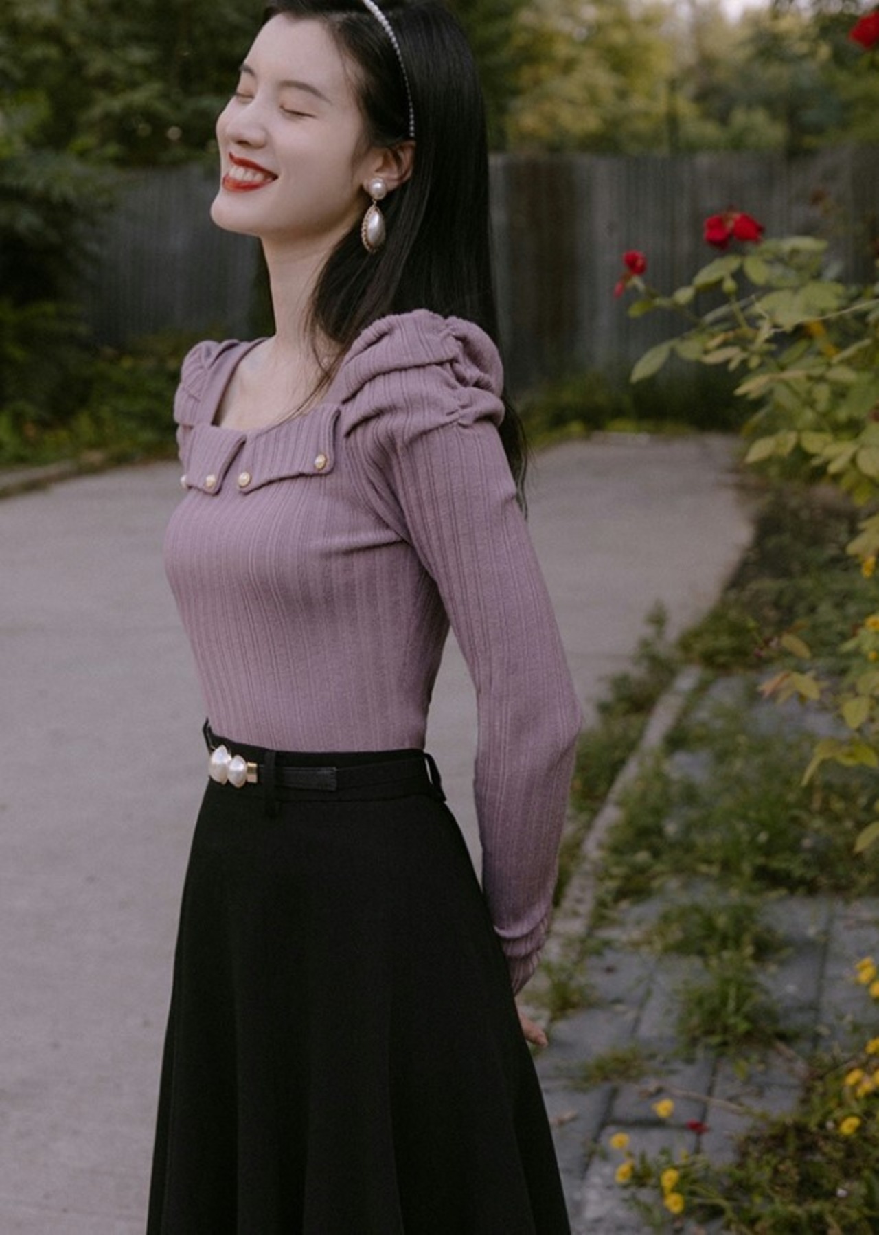 セットアップ レディース 秋冬 ツーピース ニット スクエアネック ボーダー 長袖 ミモレ丈 オフィス ママコーデ プチプラ ab2068