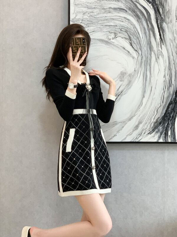 ニットワンピース ワンピース レディース ニットリボン ビジュー 秋冬 デート お出かけ MH3235