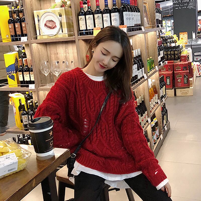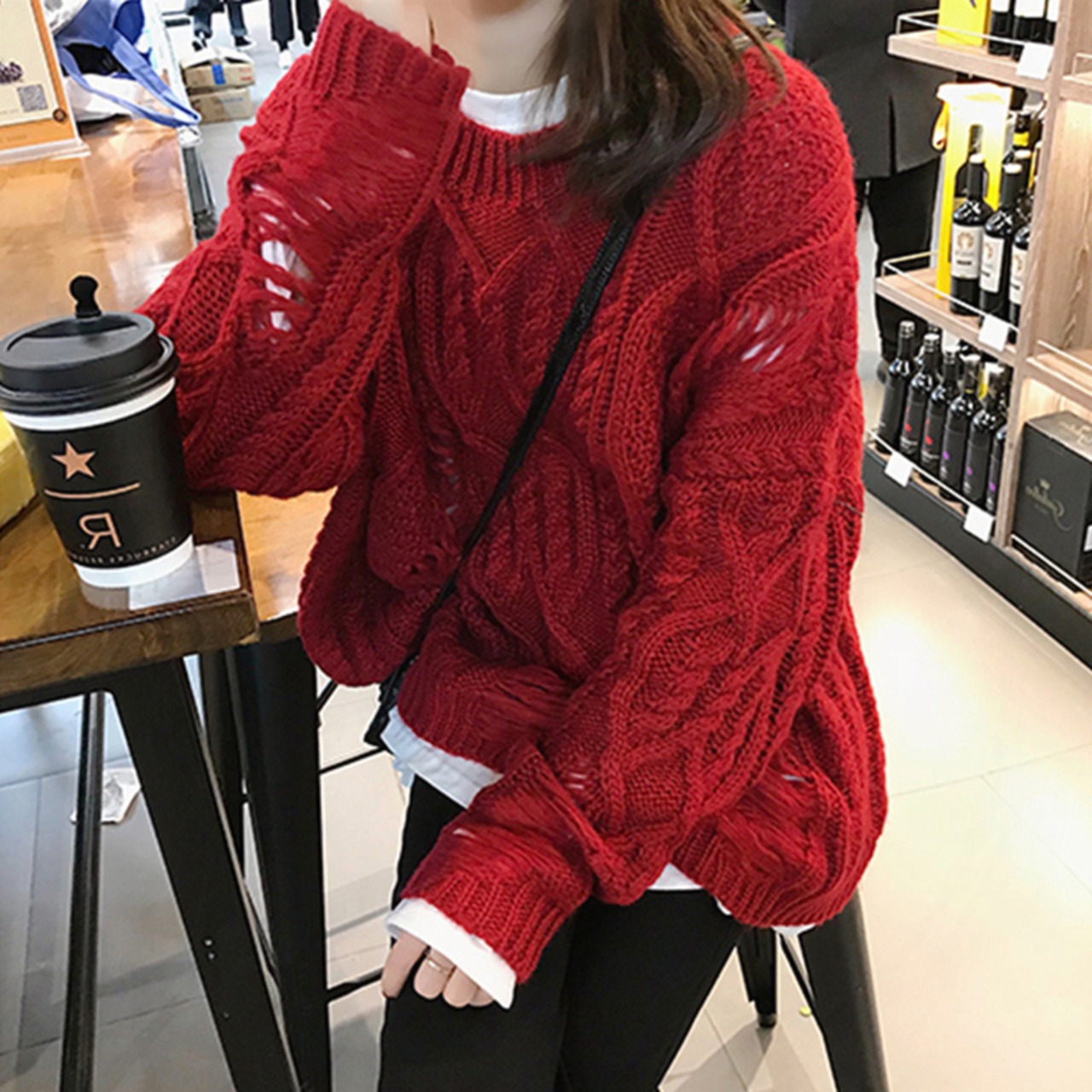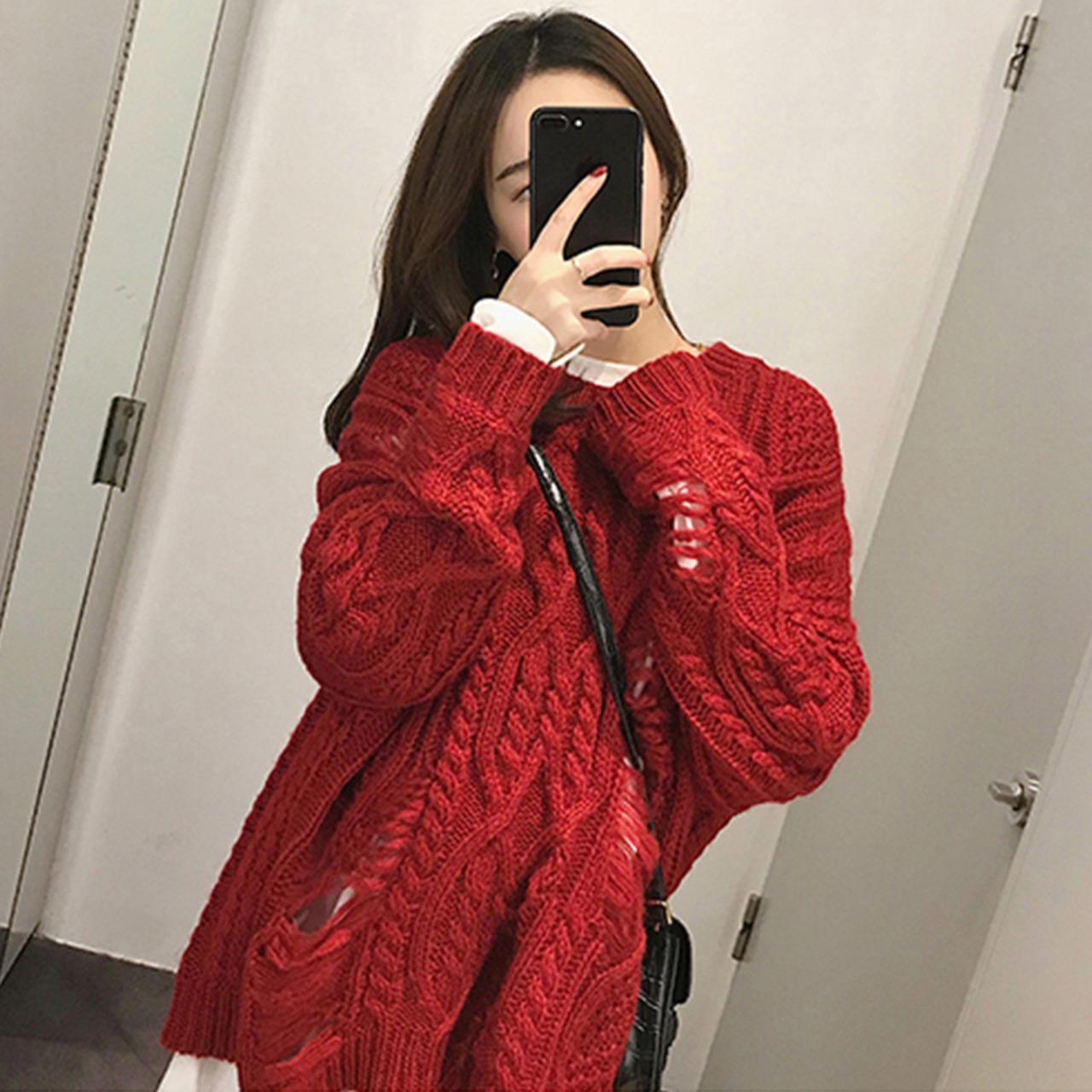 セーター トップス レディース 長袖 ニット レッド ルーズ カジュアル こなれ感 秋 冬 デート お出かけ MH3243