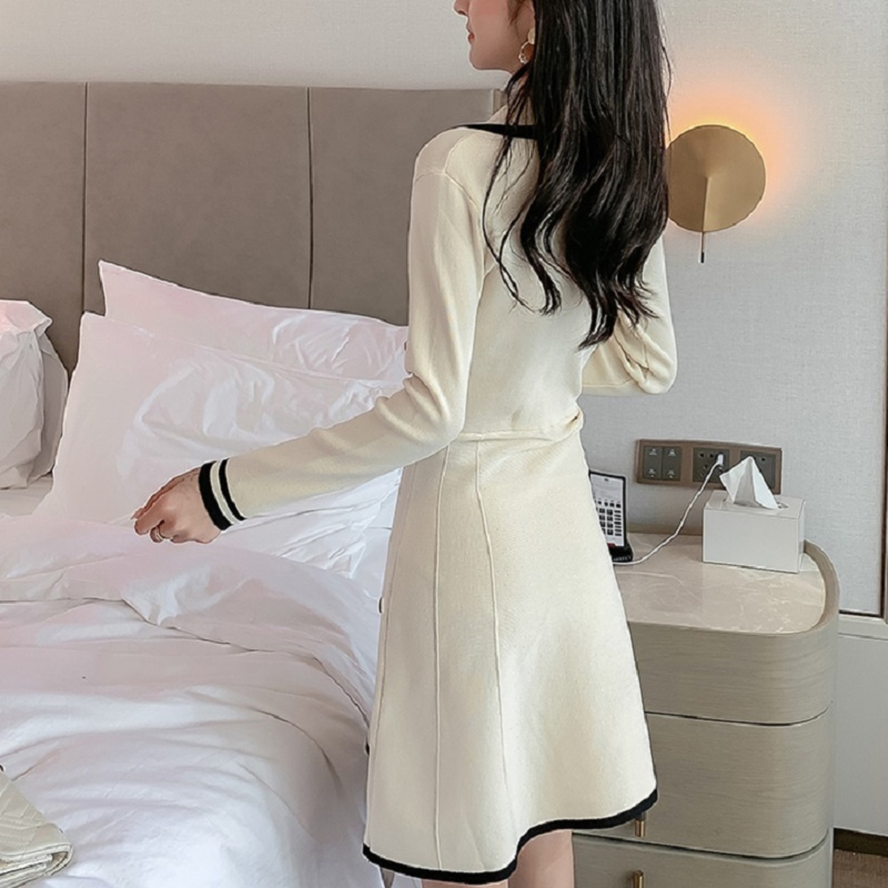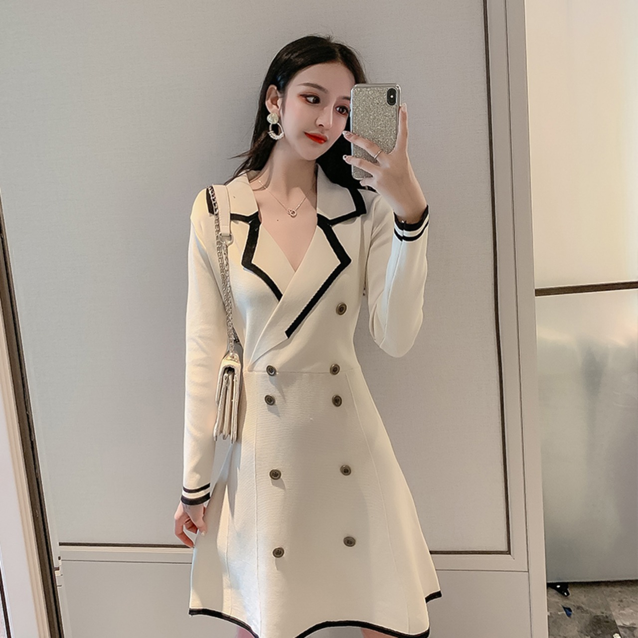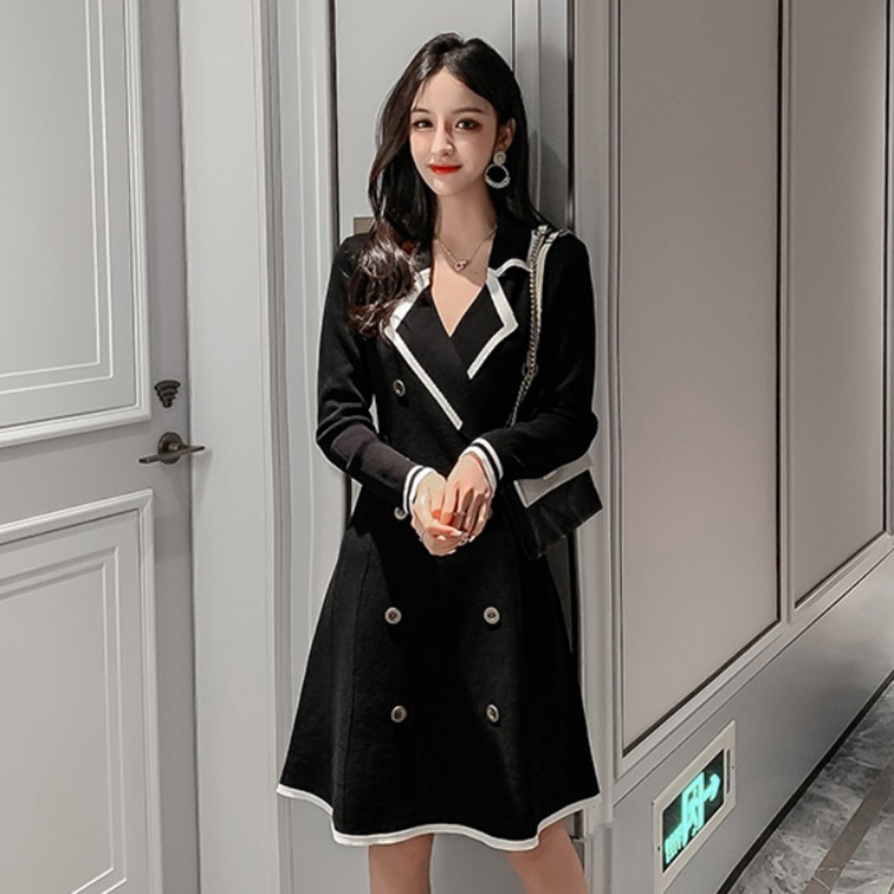 スーツワンピース ワンピース レディース 長袖 スーツ襟 膝丈 上品 エレガント ママコーデ デート お出かけ MH3244