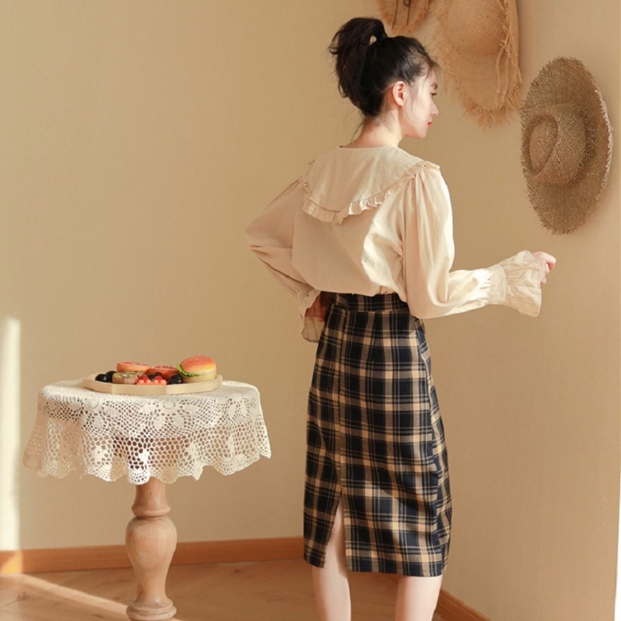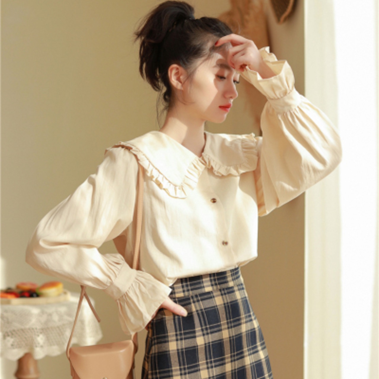 ブラウス トップス レディース 長袖 ドールカラー トランペットスリーブ アプリコット フェミニン ママコーデ デート お出かけ MH3261