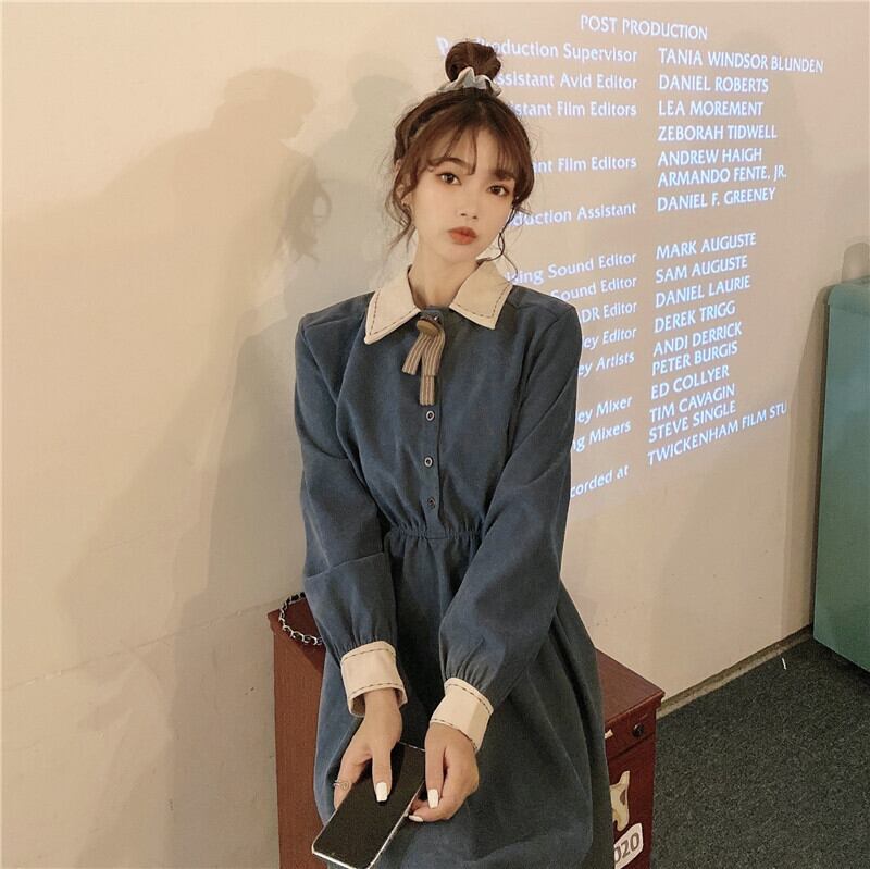 ワンピース レディース 長袖 ロング丈 シャツ襟 Aライン 上品 シック ママコーデ デート おでかけ MH3283