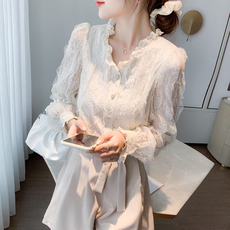 ブラウス トップス レディース 長袖 Vネック フリル レース 大きいサイズ 秋冬 ママコーデ デート お出かけ MH3330