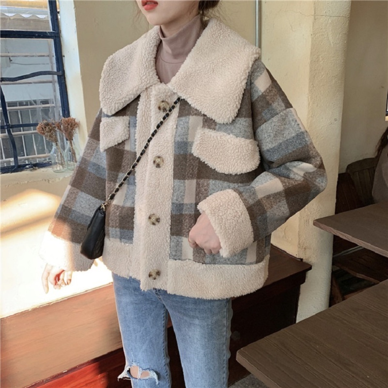 ボアジャケット アウター レディース ボア ジャケット チェック柄 大人可愛い ママコーデ デート お出かけ MH3334