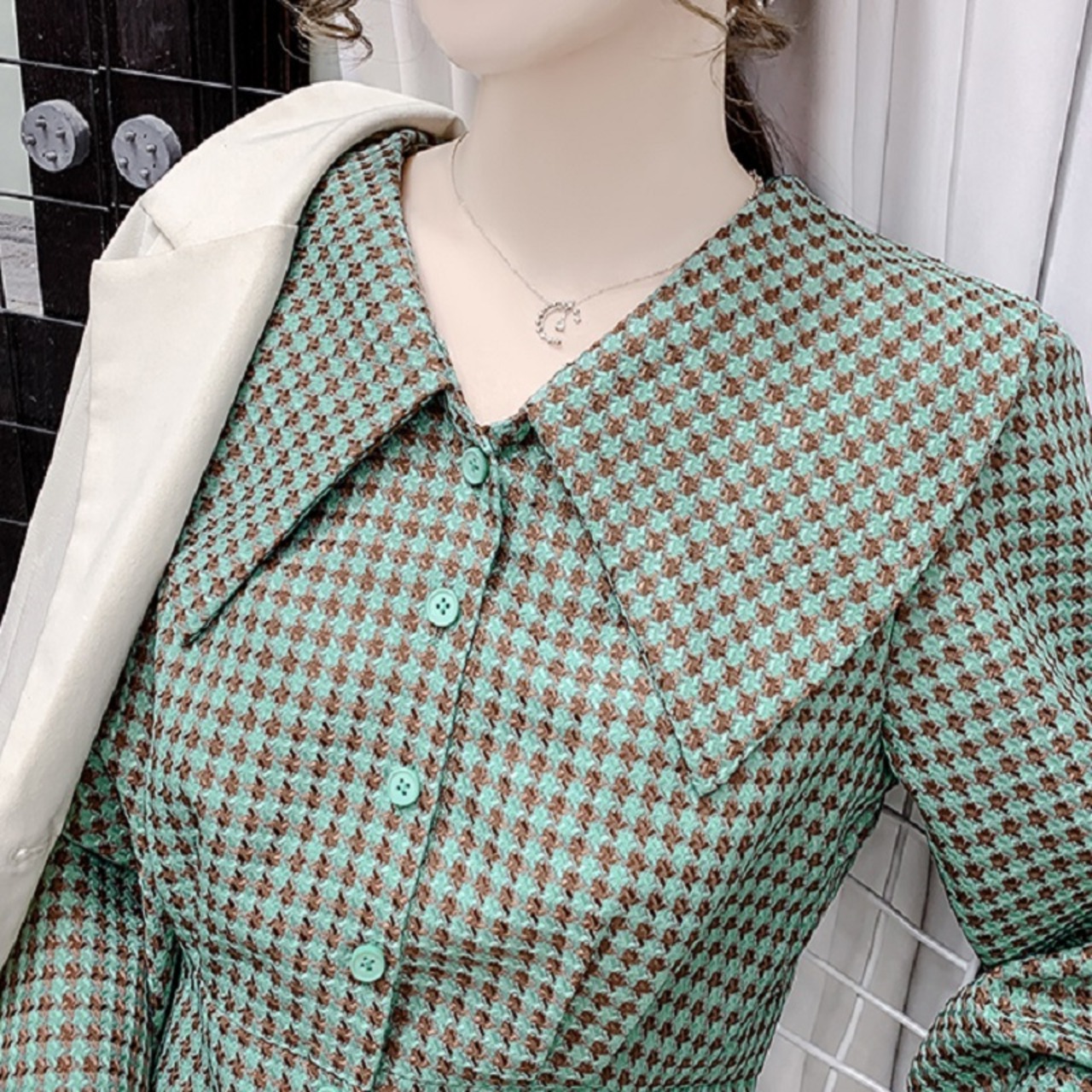 千鳥格子柄ブラウス トップス レディース 長袖 千鳥格子柄 ドールカラー 大人可愛い フェミニン 秋冬 デート お出かけ MH3351