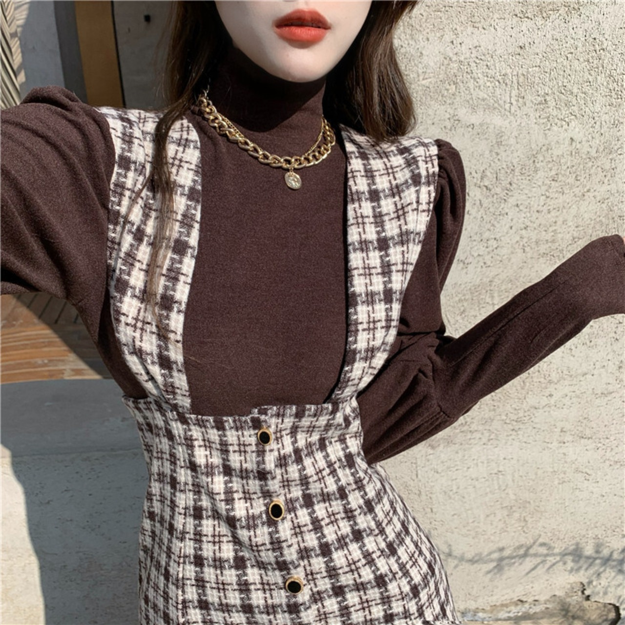 上下セット セットアップ レディース 長袖 ジャンパースカート チェック柄 着回し 秋冬 ガーリー ママコーデ デート お出かけ MH3368