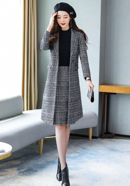 ツーピース セットアップ レディース 秋冬 チェック 格子柄 コート スカート タイトスカート ひざ丈 オフィス おでかけ ガーリー プチプラ ab2163