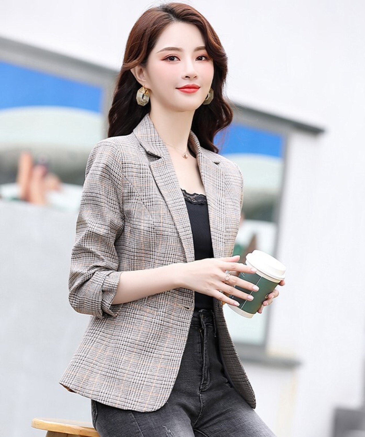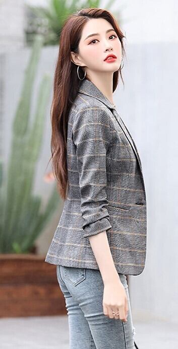 アウター ジャケット レディース スーツ 秋冬 チェック 長袖 オフイス 通勤時 ママコーデ 集まり シック ab2169